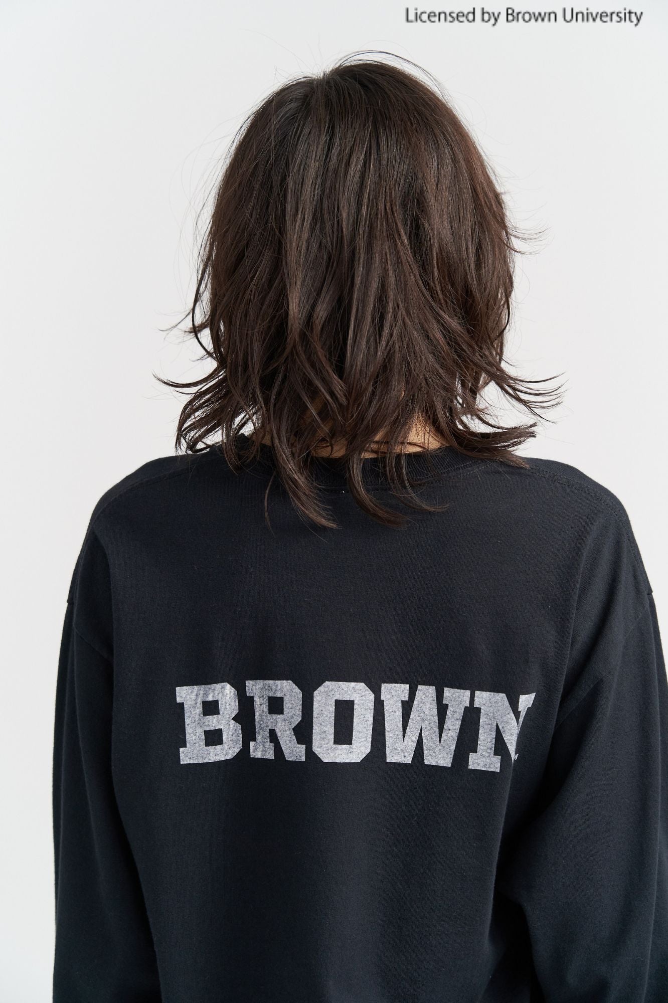 クラシックなBROWN大学のロゴをプリントし、仕上げにバイオウォッシュ加工を施すことで、