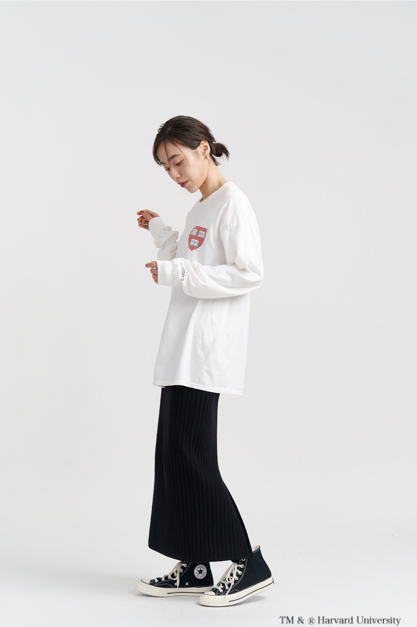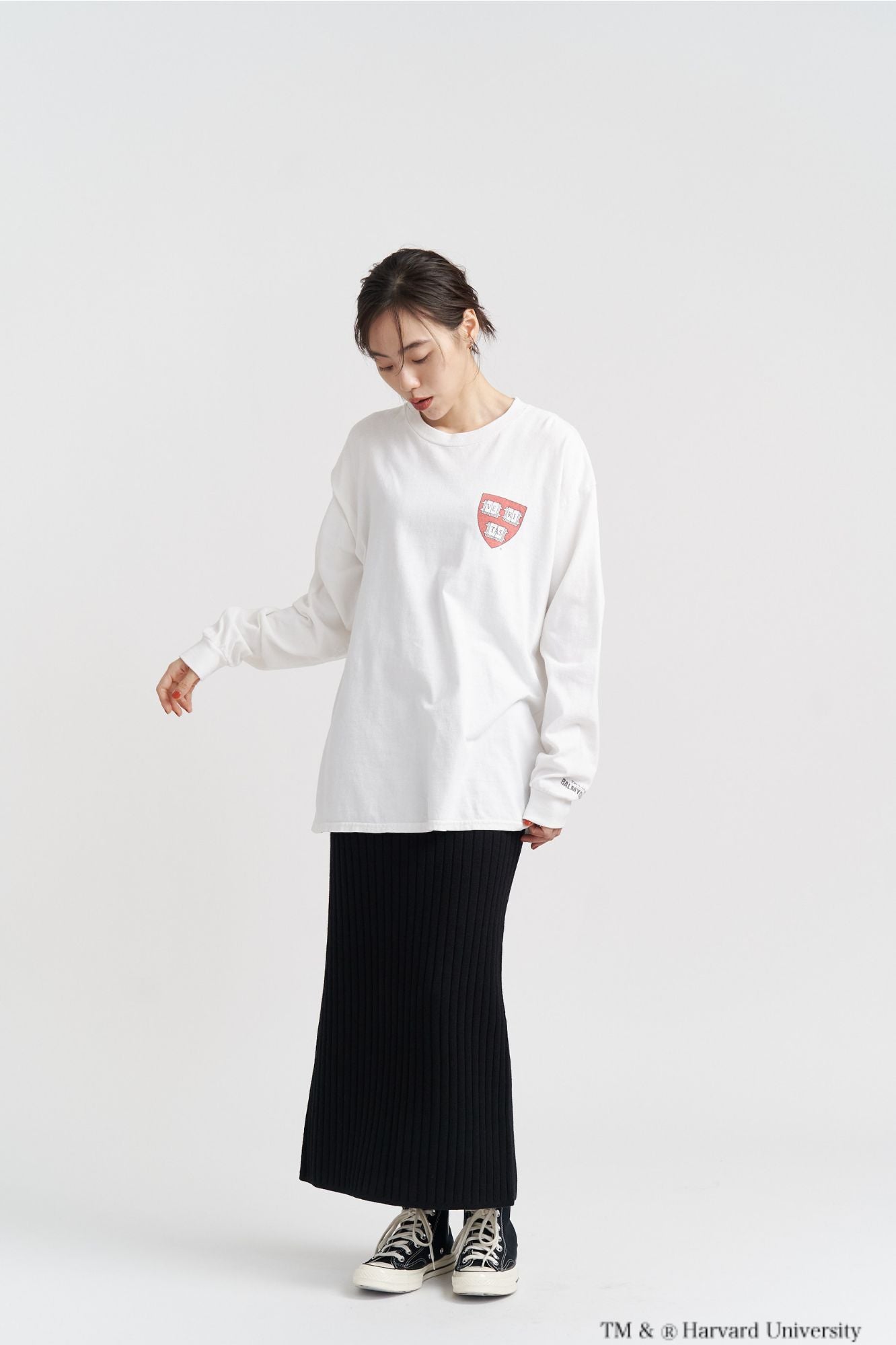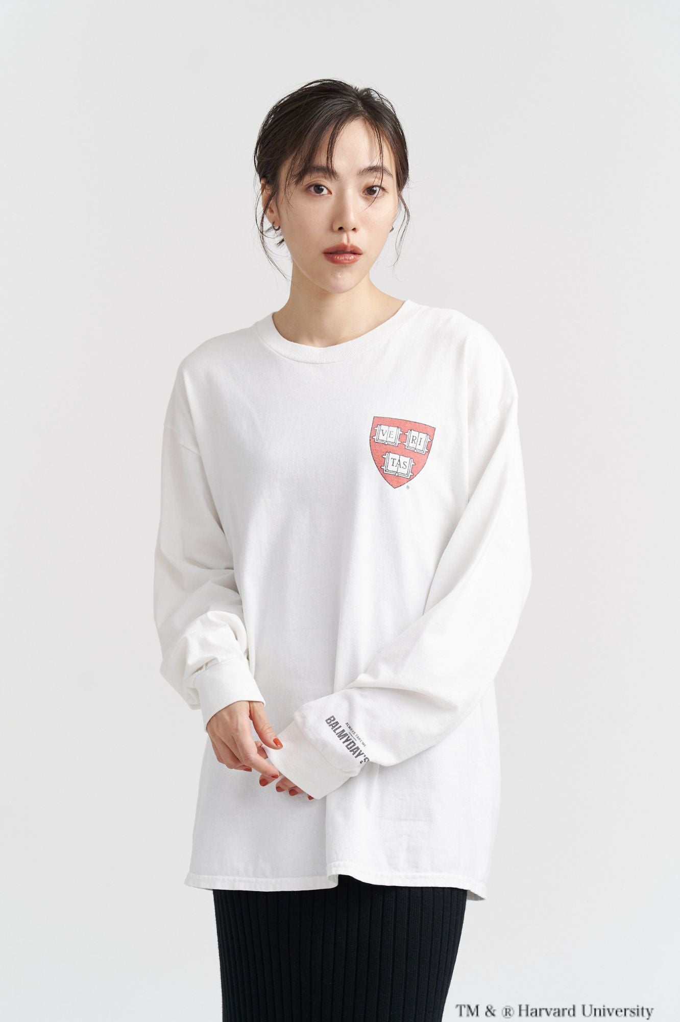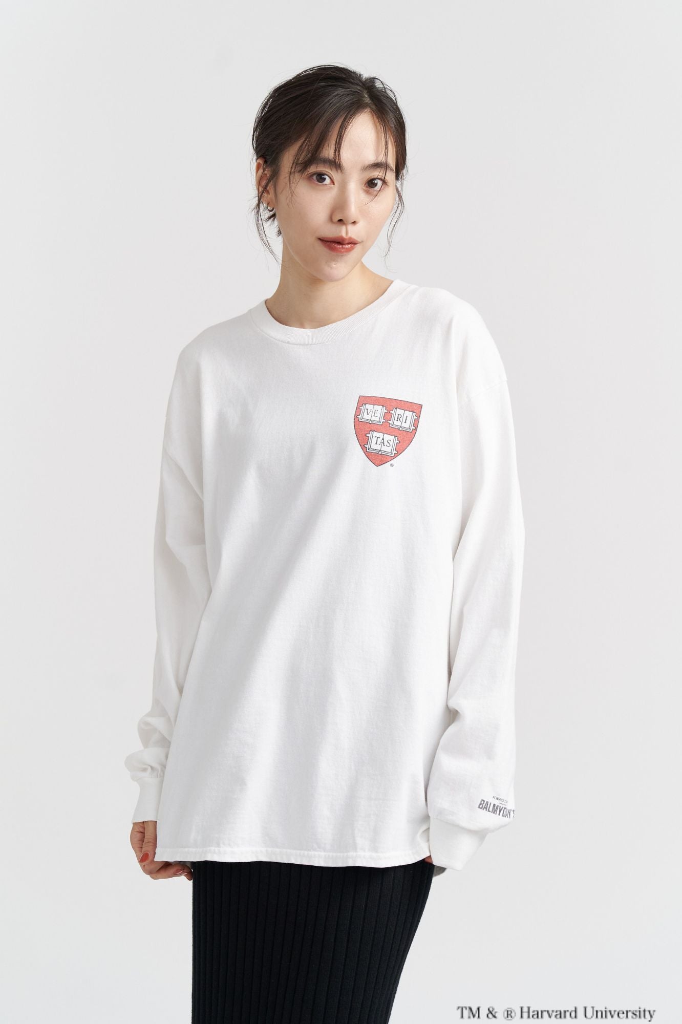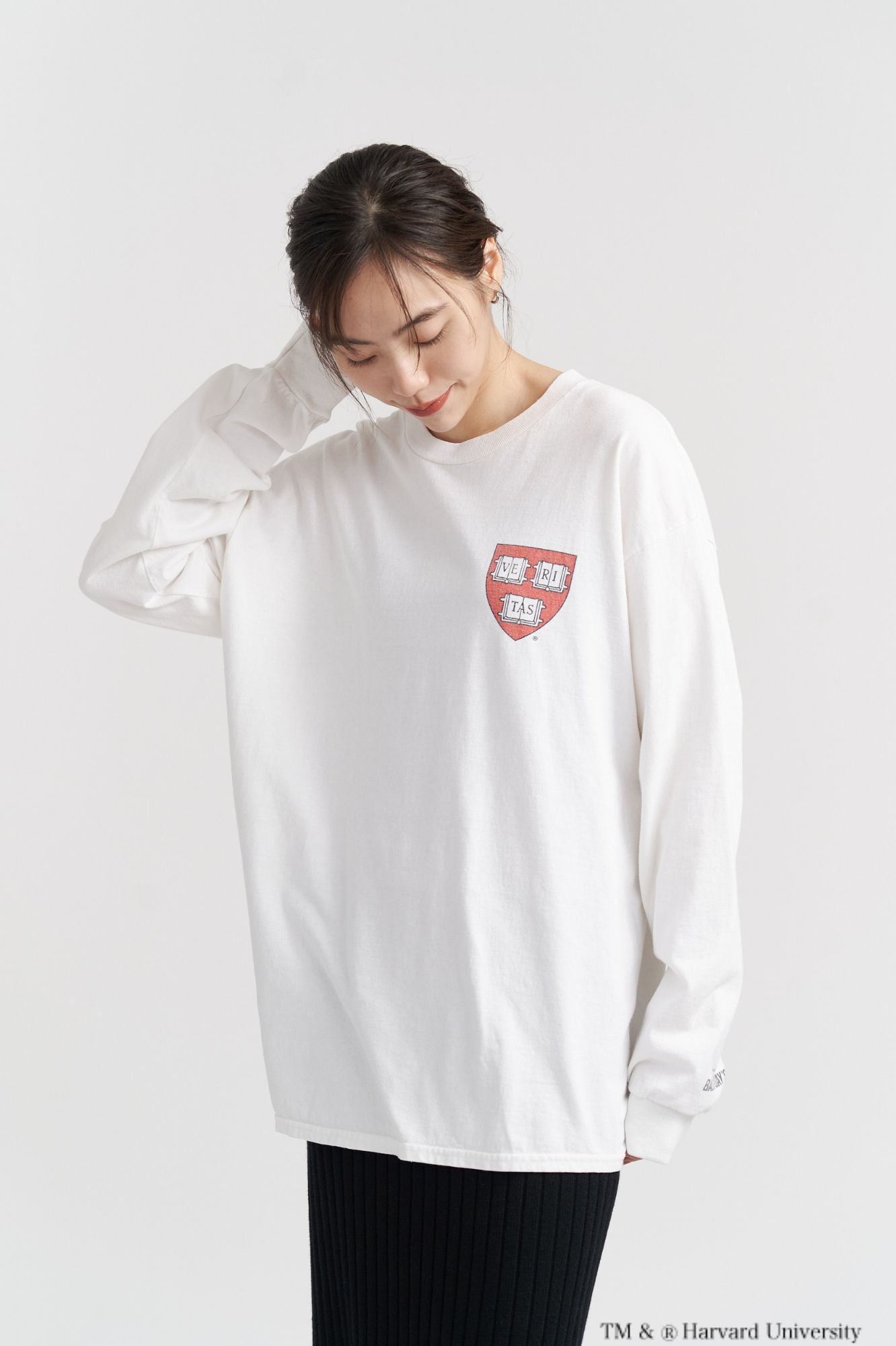 HARVARD(ハーバード大学)のクラシックなロゴを染み込みプリントで表現した、ヴィンテージ感漂うロングスリーブTシャツです。