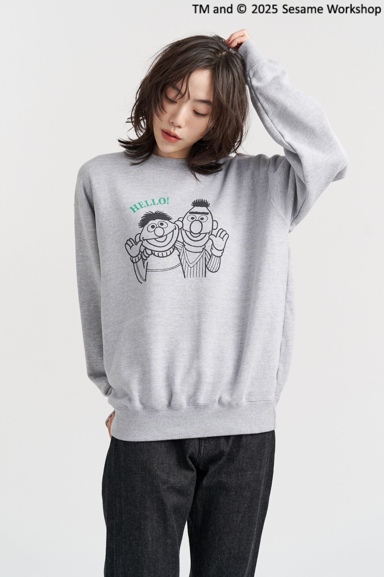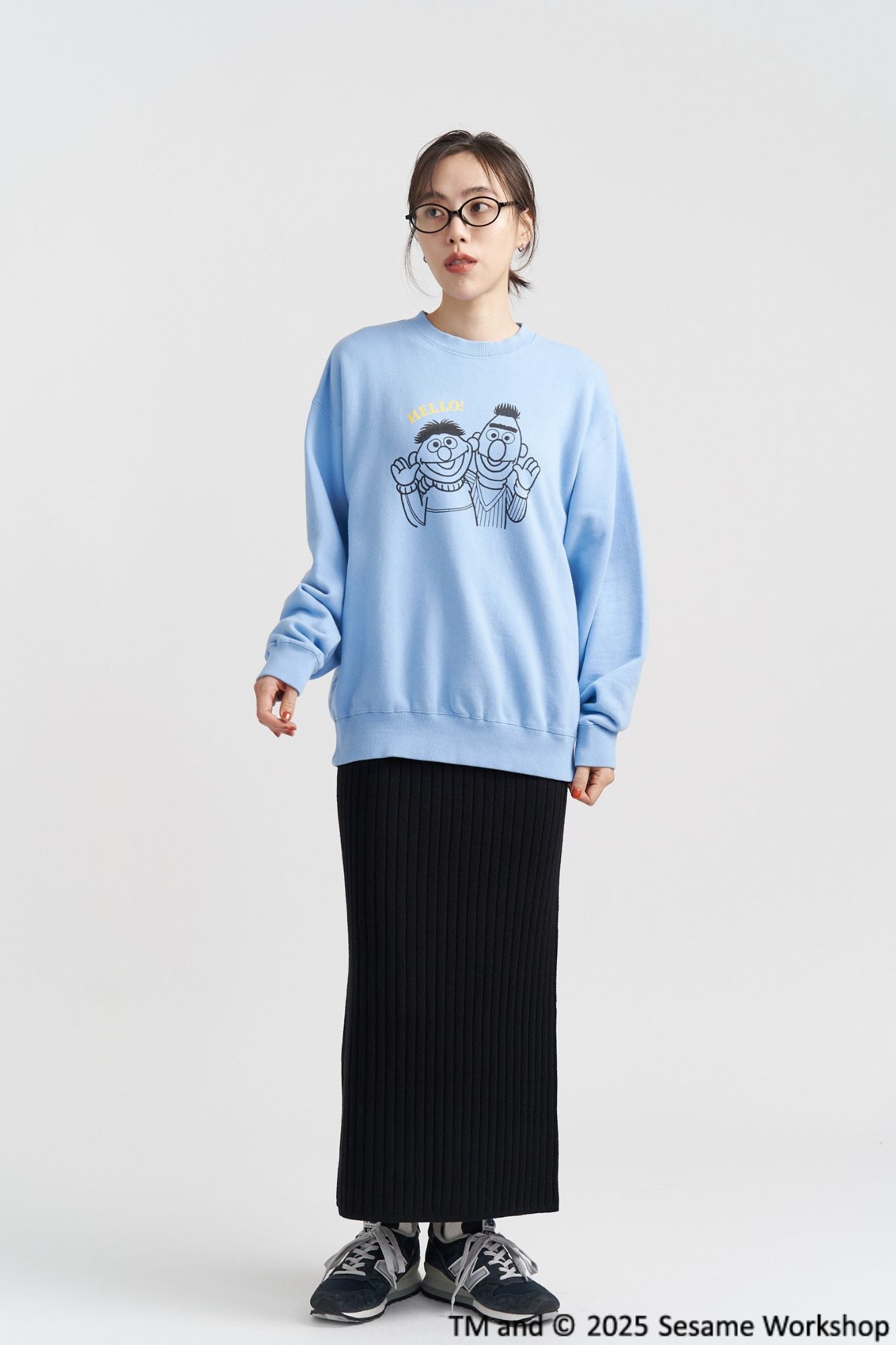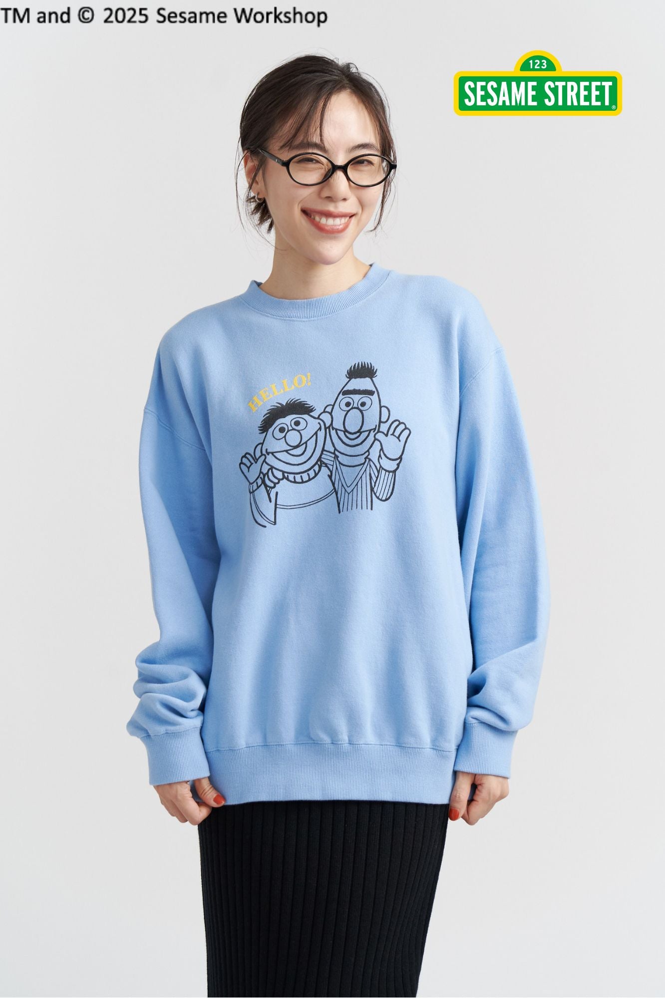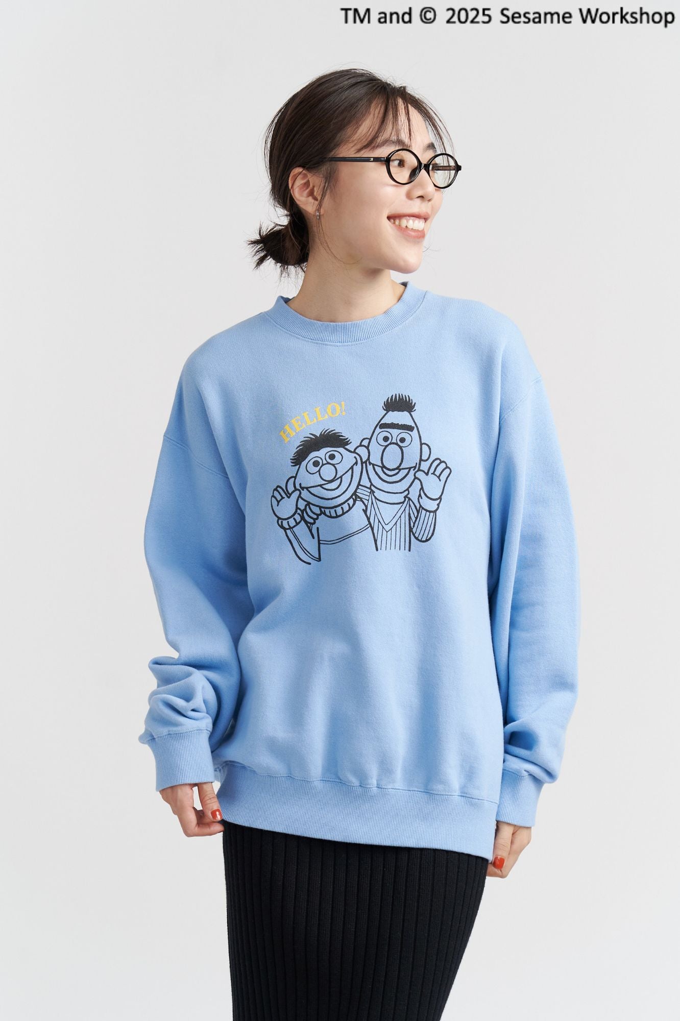 セサミストリートの仲間たちのグラフィックを染み込みプリントで表現し、さらに製品洗いをかけることで、まるで古着のような柔らかな風合いに仕上げた一枚。