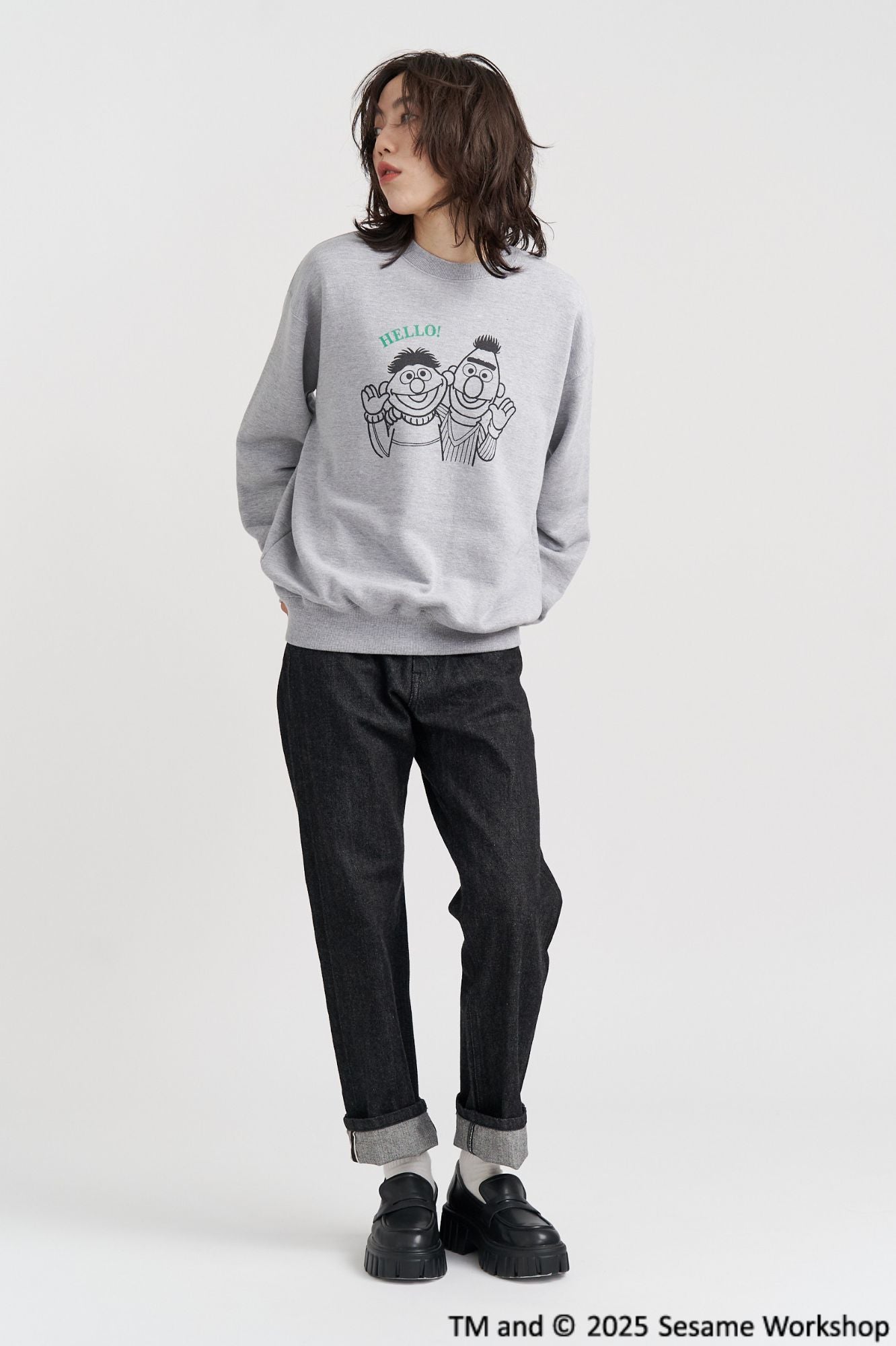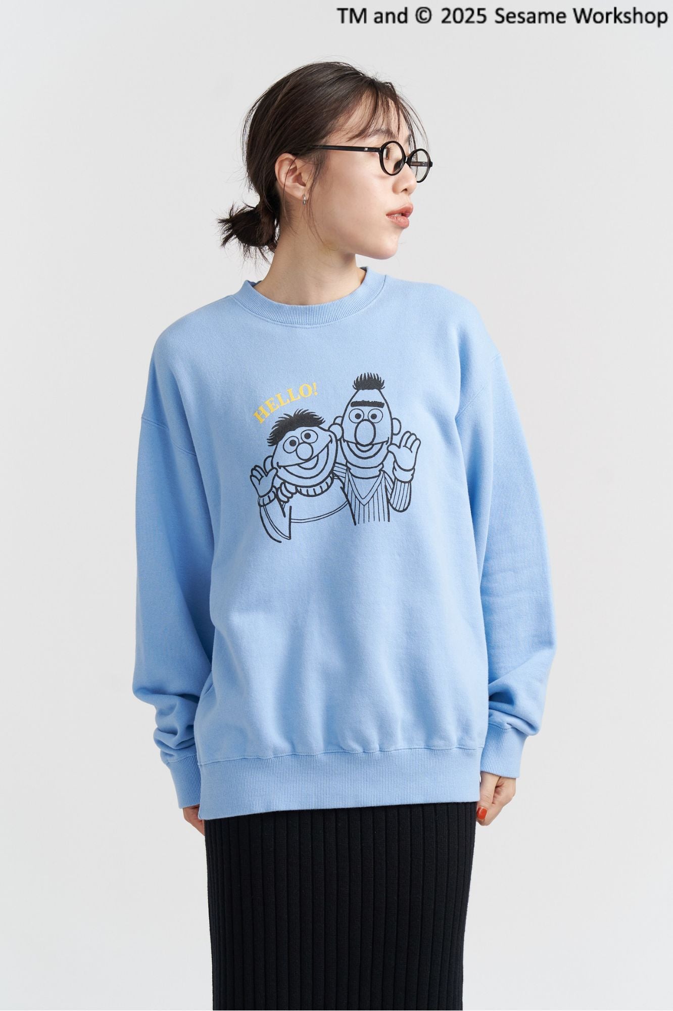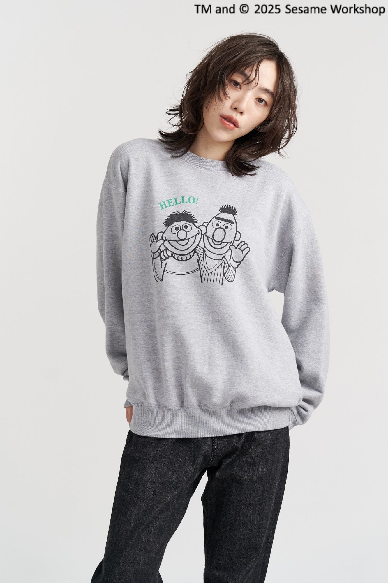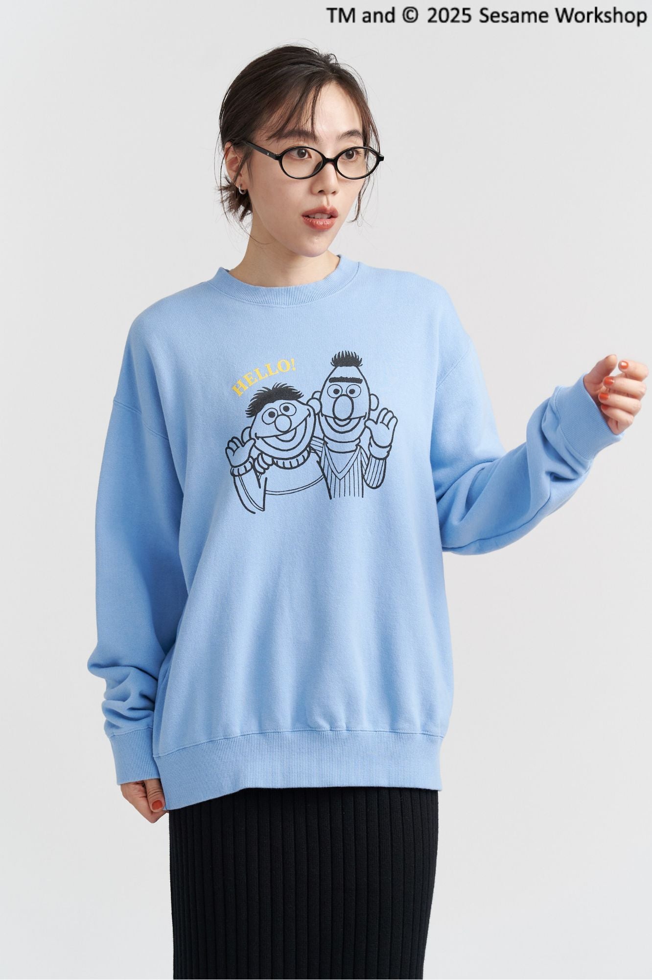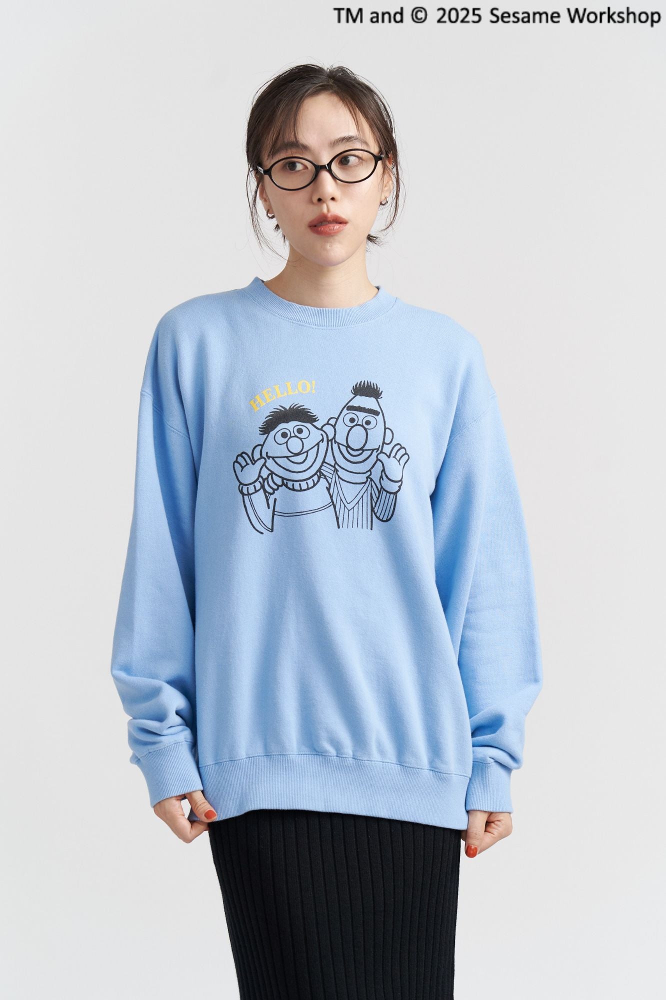 セサミストリートの仲間たちのグラフィックを染み込みプリントで表現し、さらに製品洗いをかけることで、まるで古着のような柔らかな風合いに仕上げた一枚。