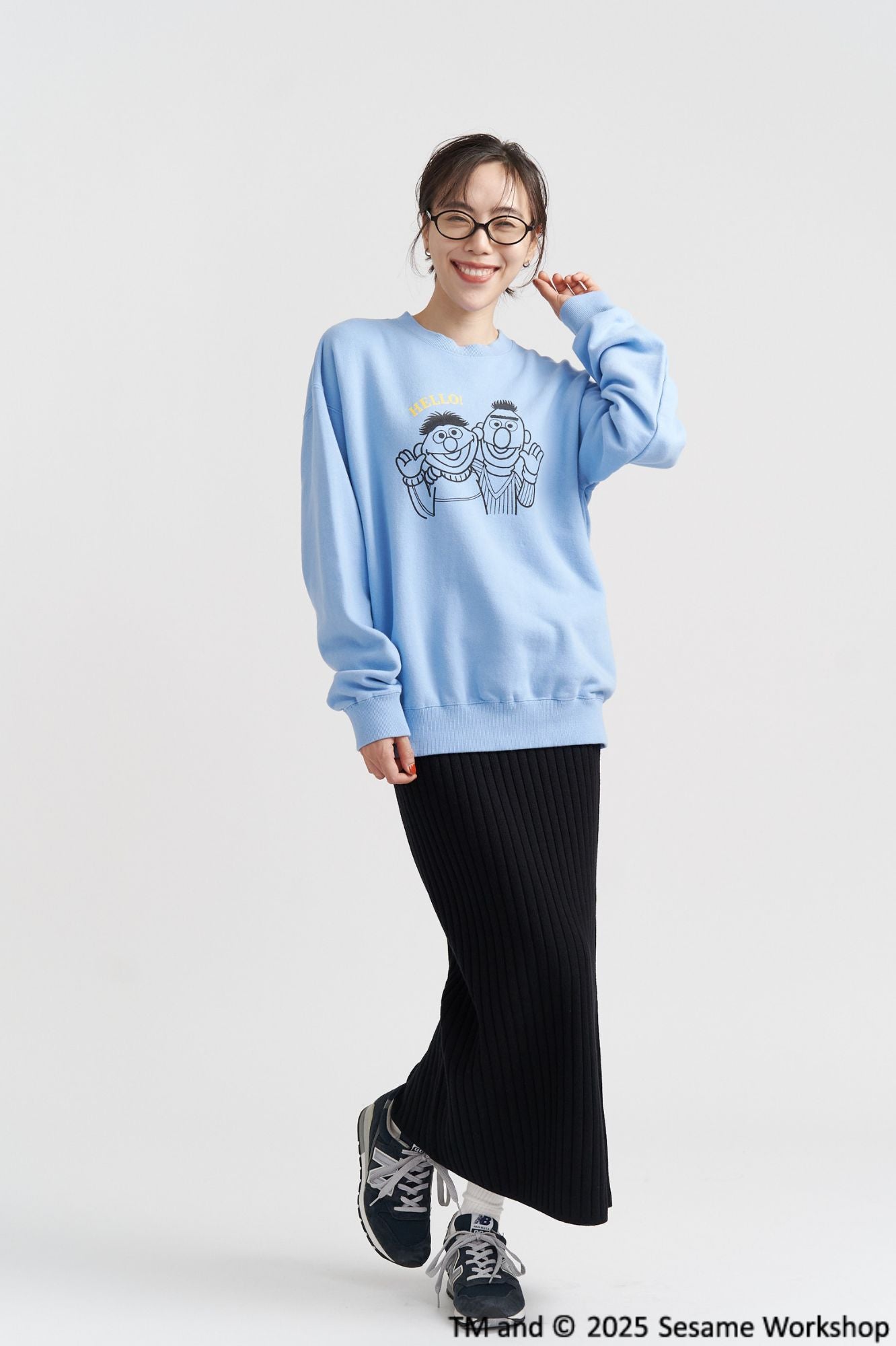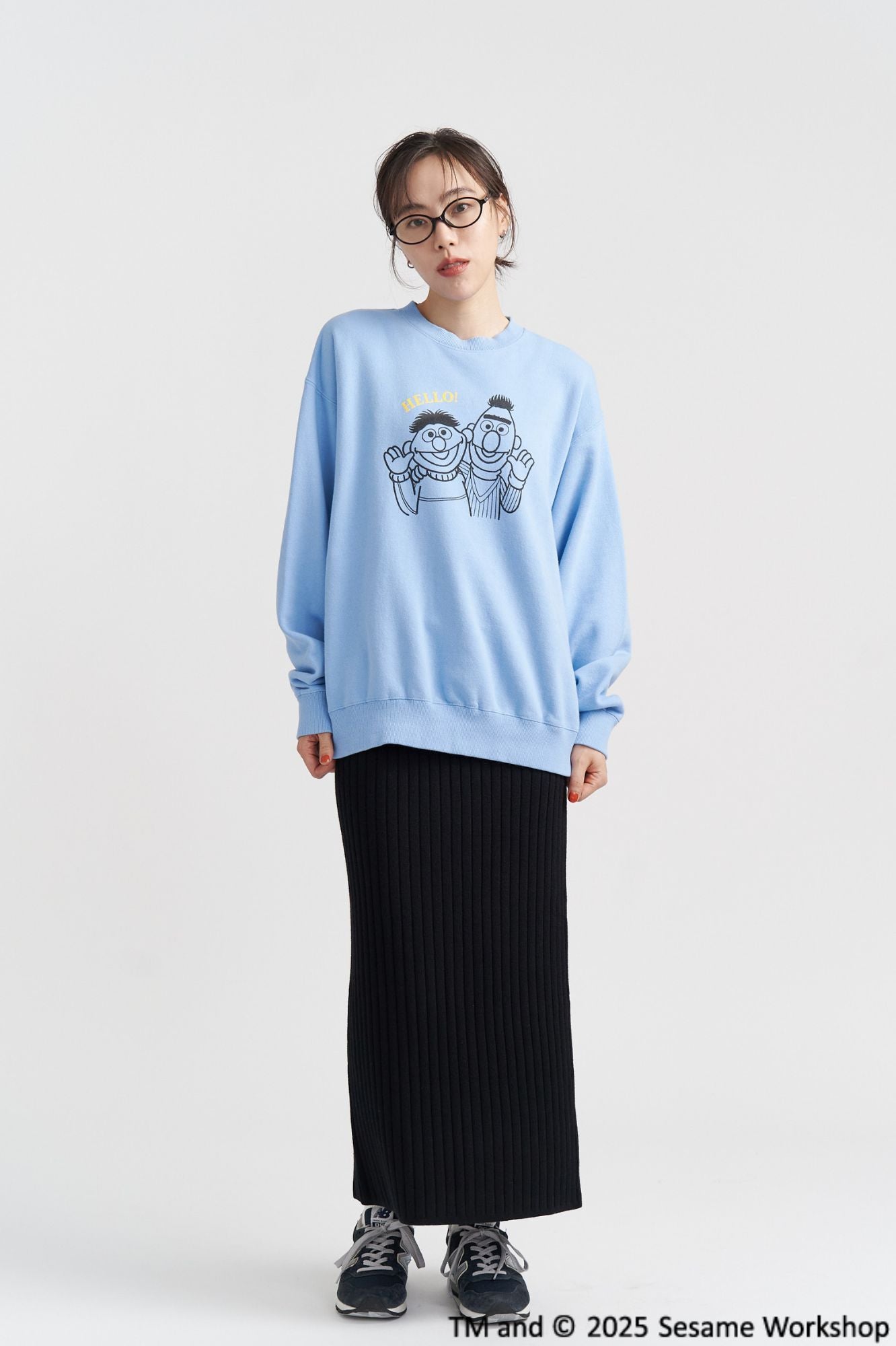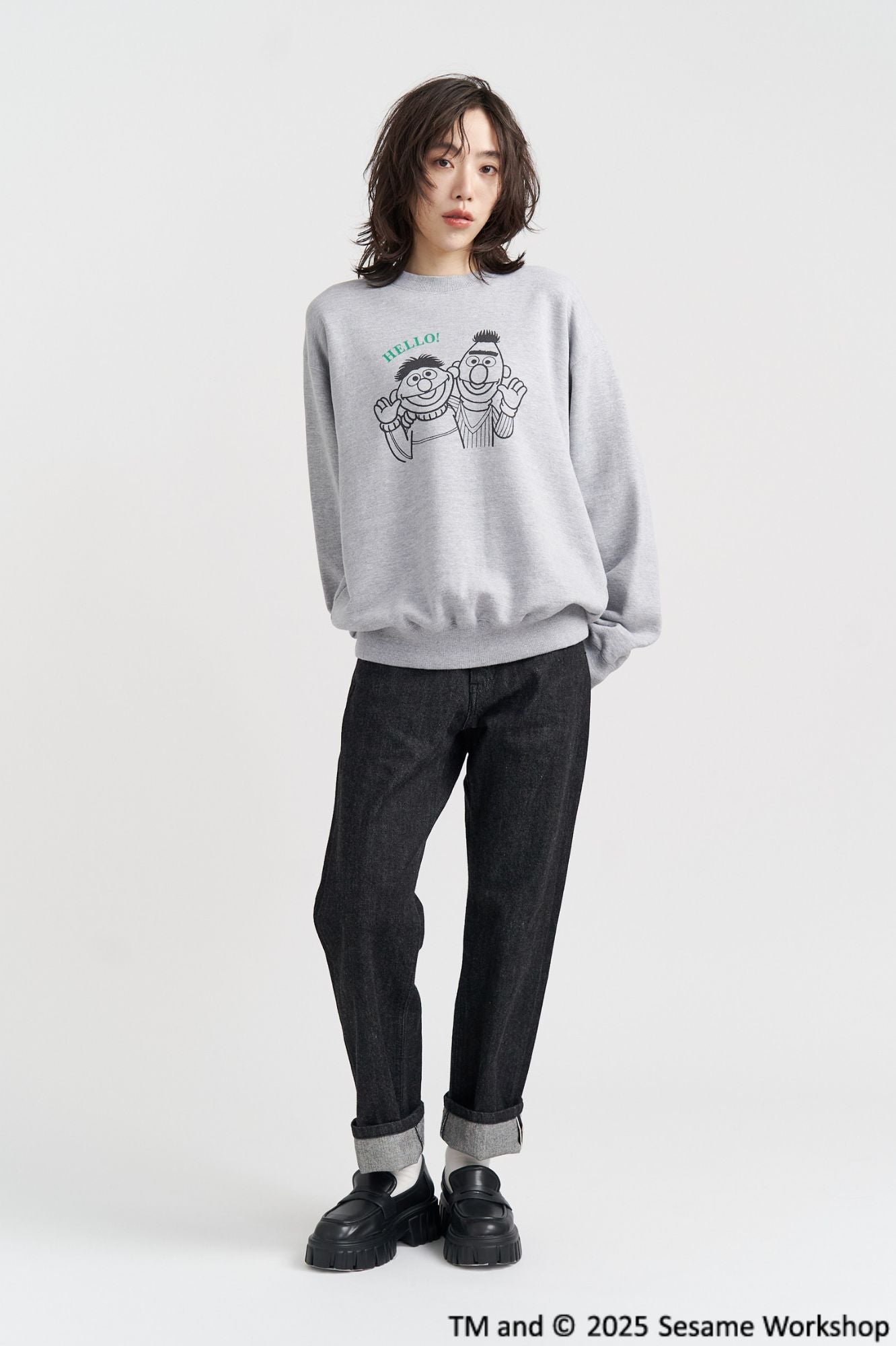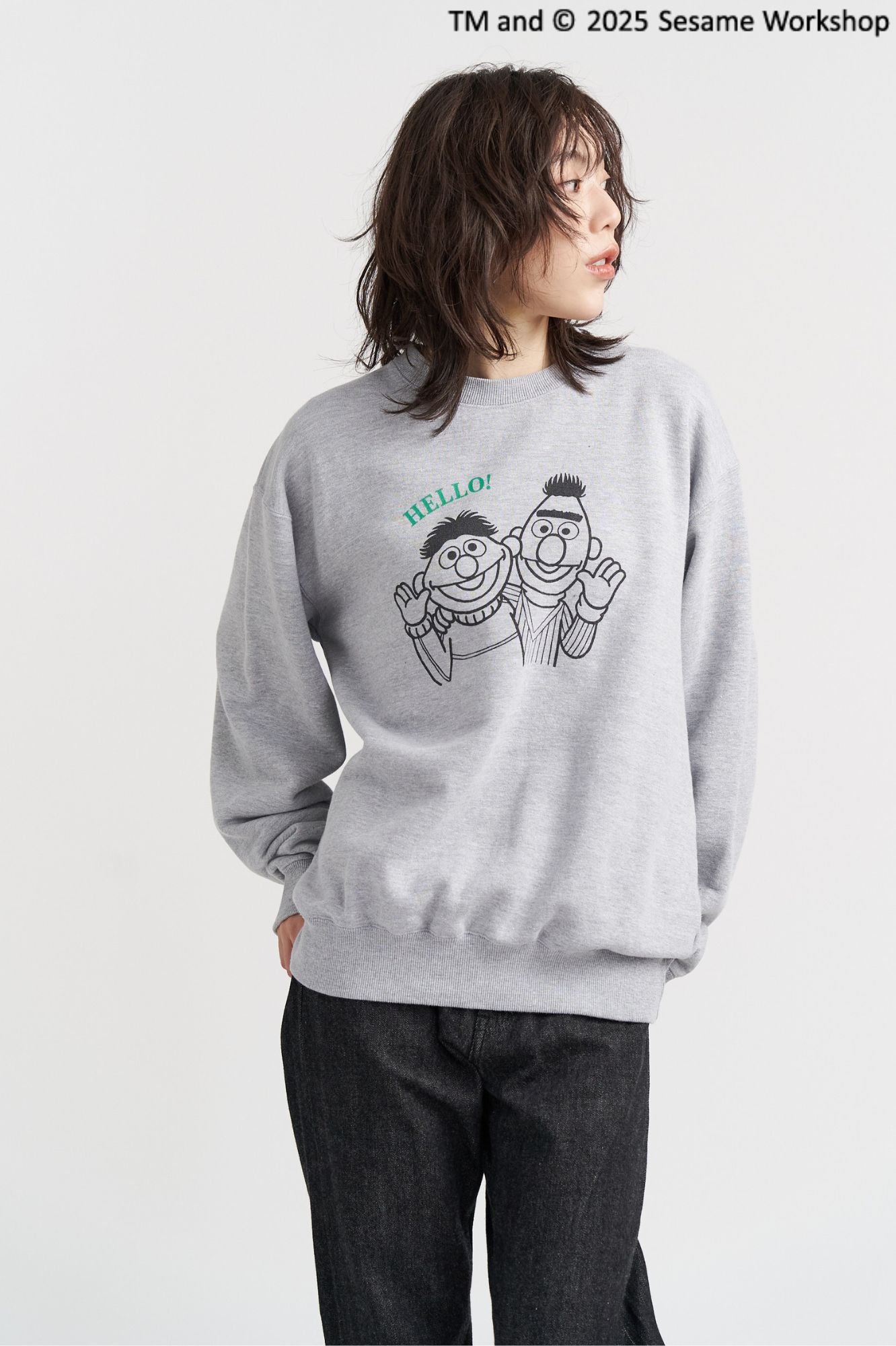 セサミストリートの仲間たちのグラフィックを染み込みプリントで表現し、さらに製品洗いをかけることで、まるで古着のような柔らかな風合いに仕上げた一枚。