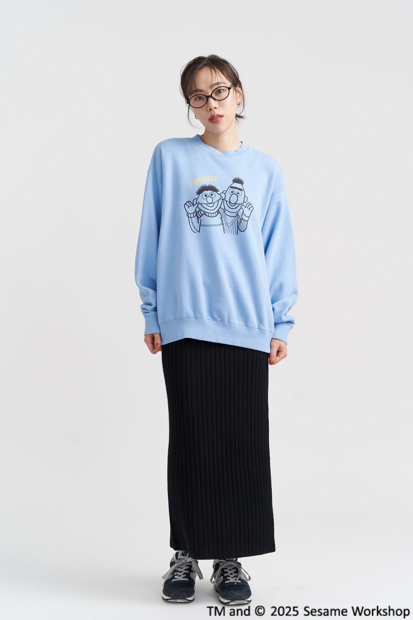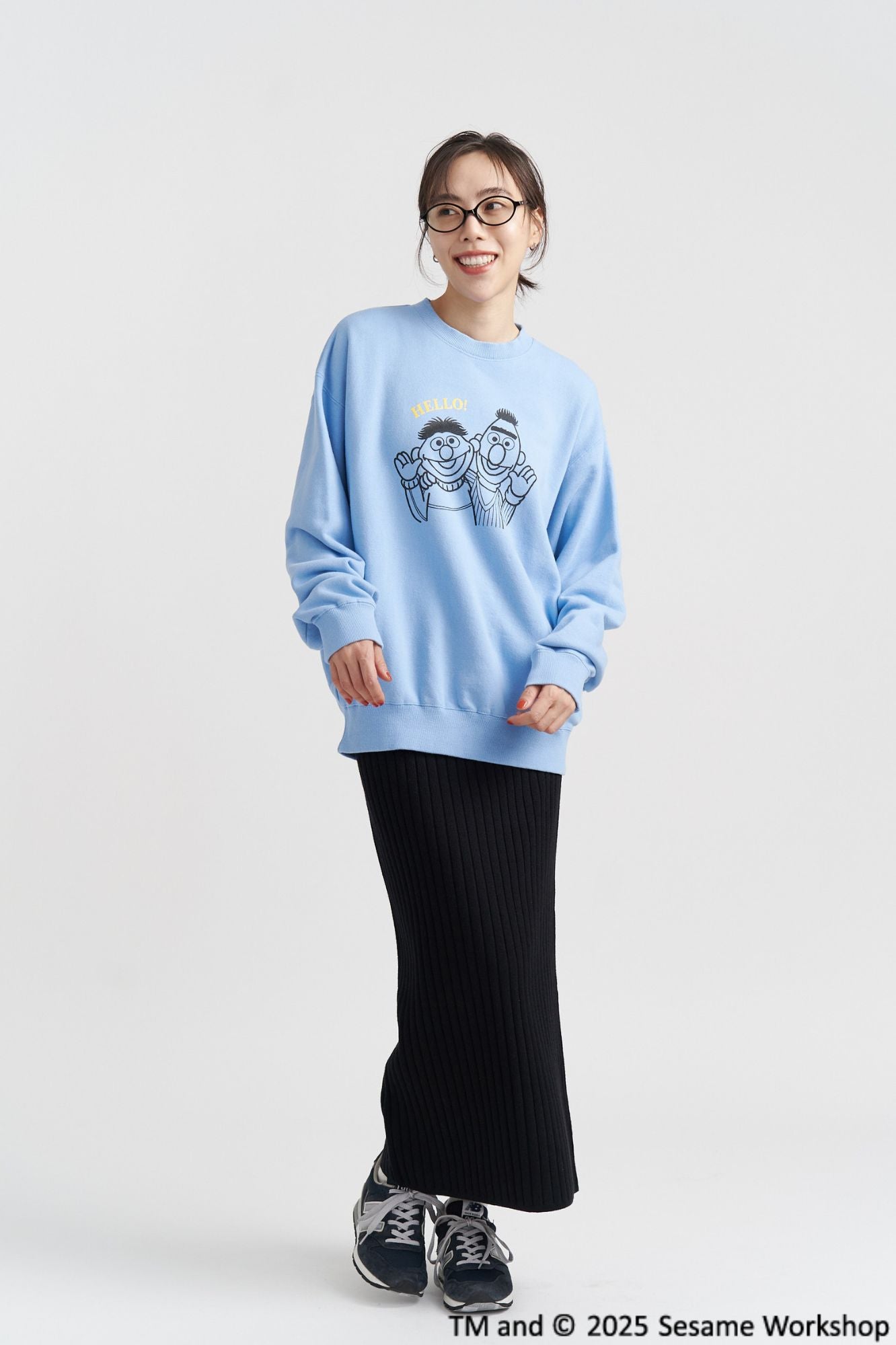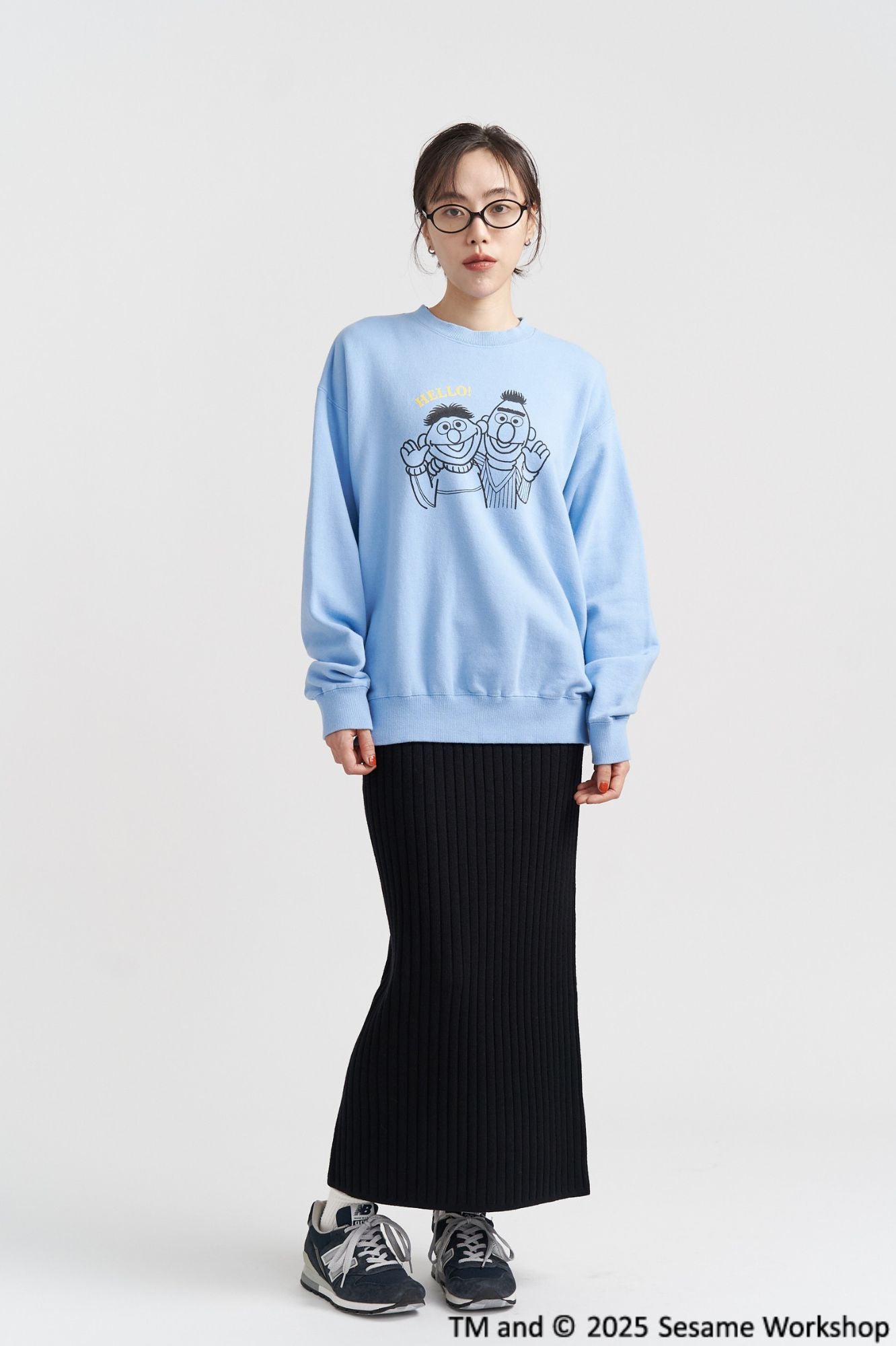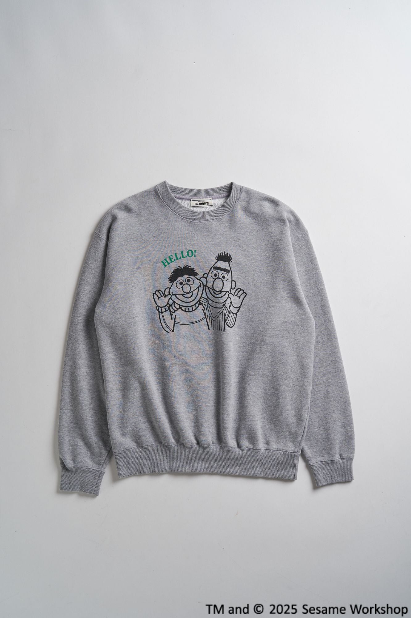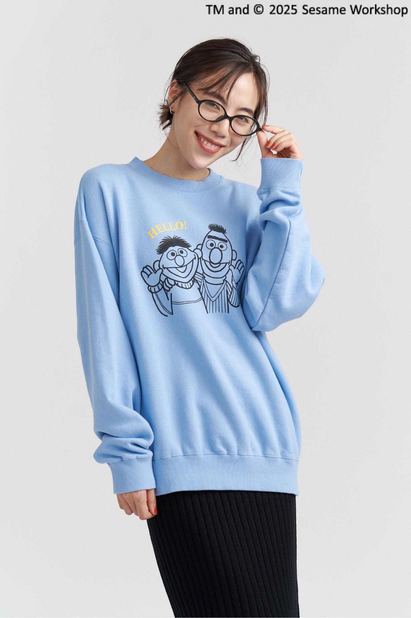 セサミストリートの仲間たちのグラフィックを染み込みプリントで表現し、さらに製品洗いをかけることで、まるで古着のような柔らかな風合いに仕上げた一枚。