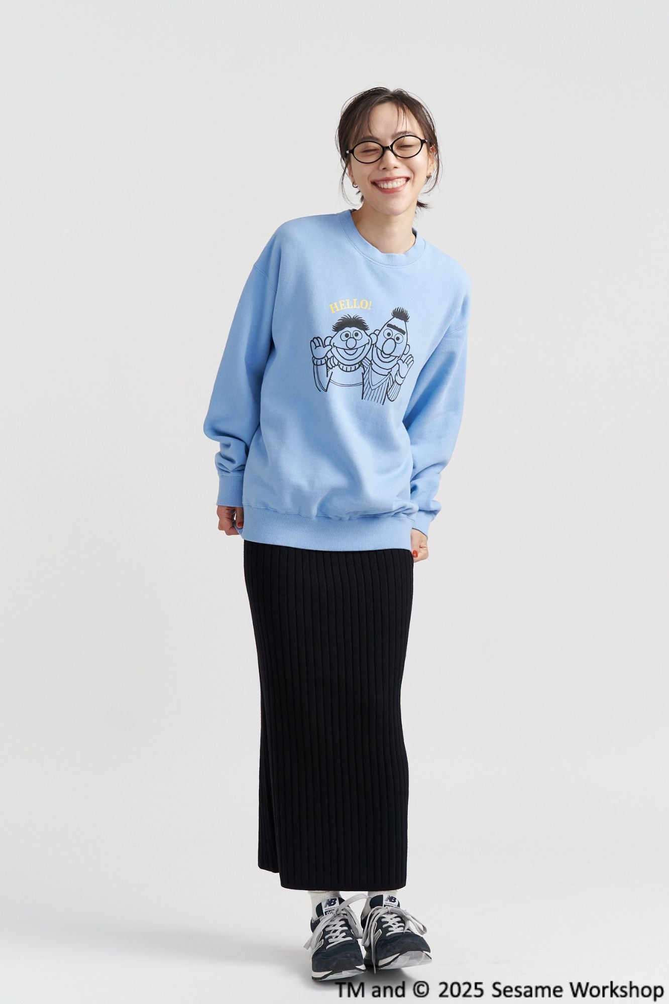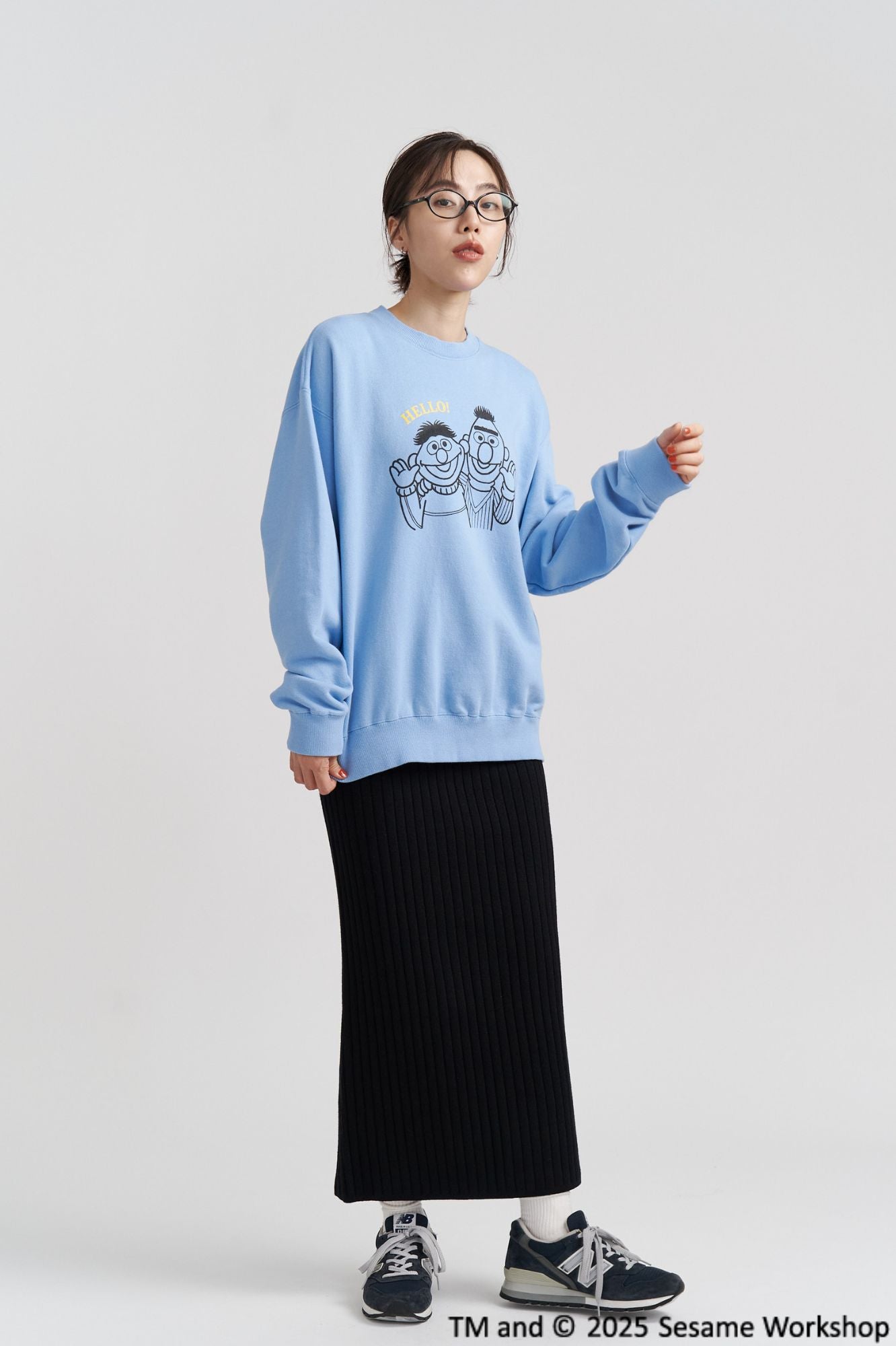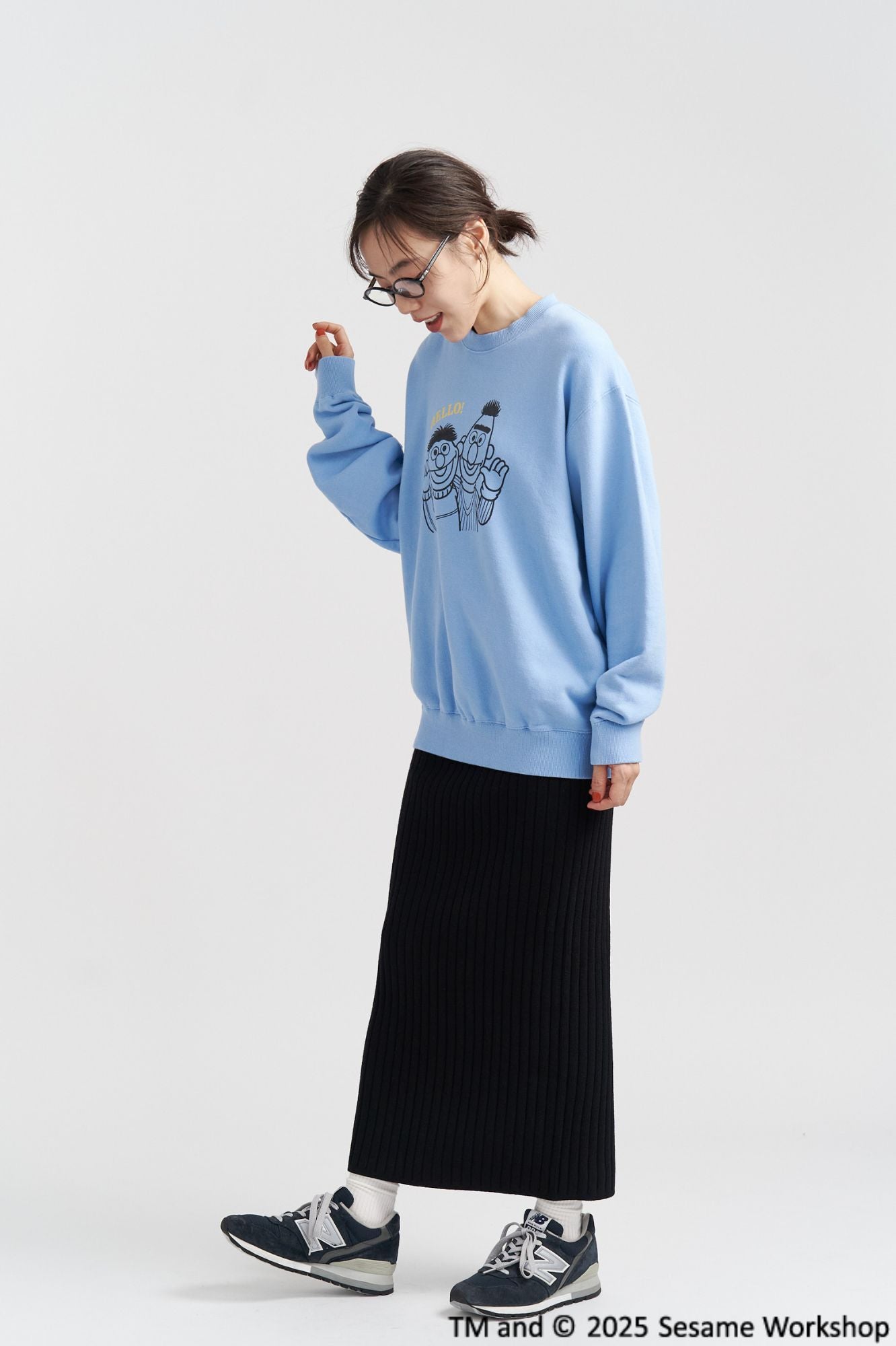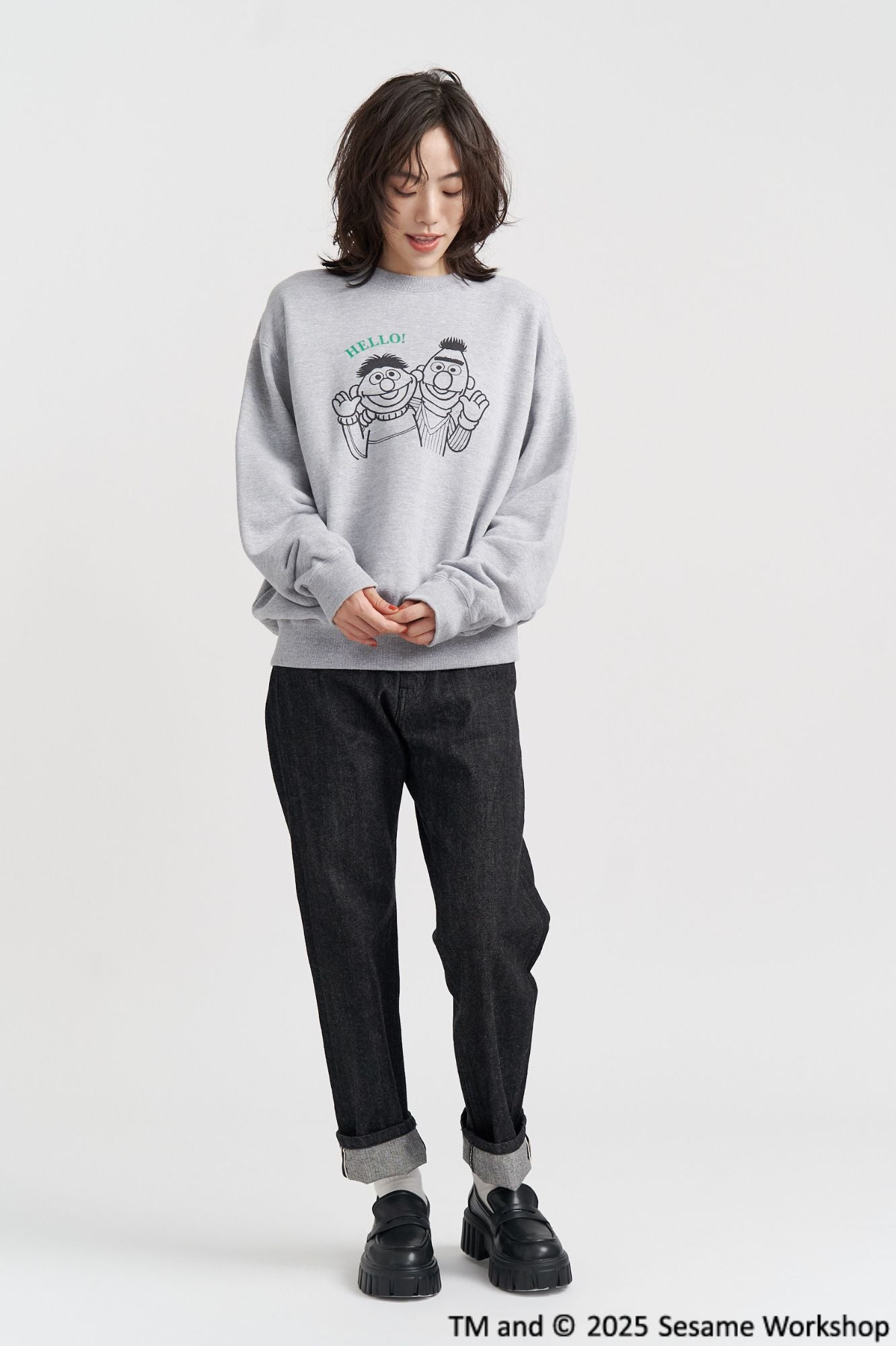 セサミストリートの仲間たちのグラフィックを染み込みプリントで表現し、さらに製品洗いをかけることで、まるで古着のような柔らかな風合いに仕上げた一枚。