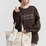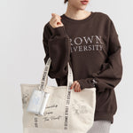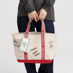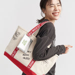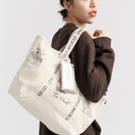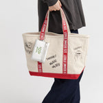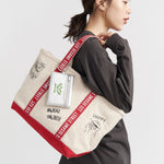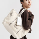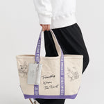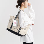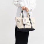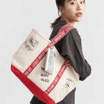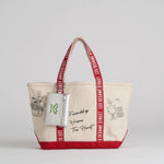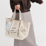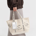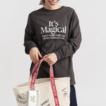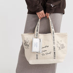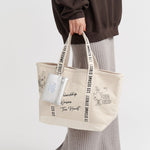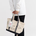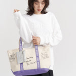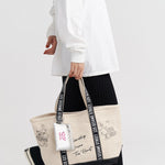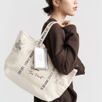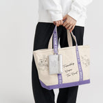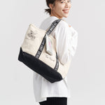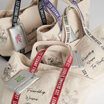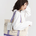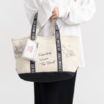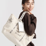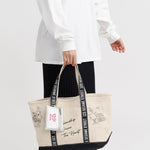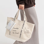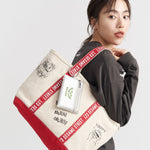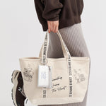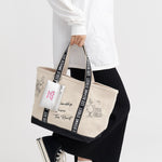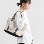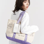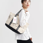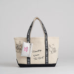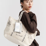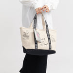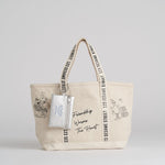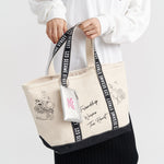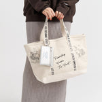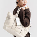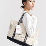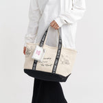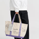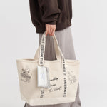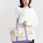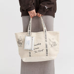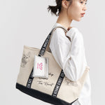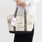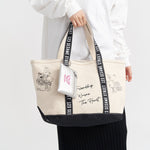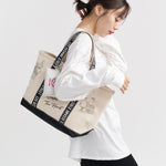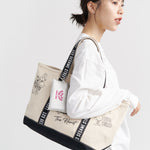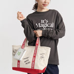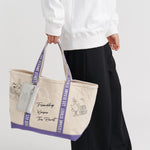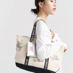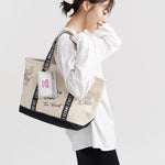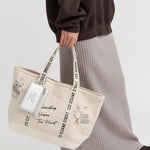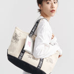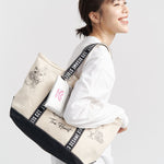 フロントに刺繍とキャラクターのプリントを組み合わせた、キャンバストートバッグ。