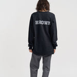 クラシックなBROWN大学のロゴをプリントし、仕上げにバイオウォッシュ加工を施すことで、