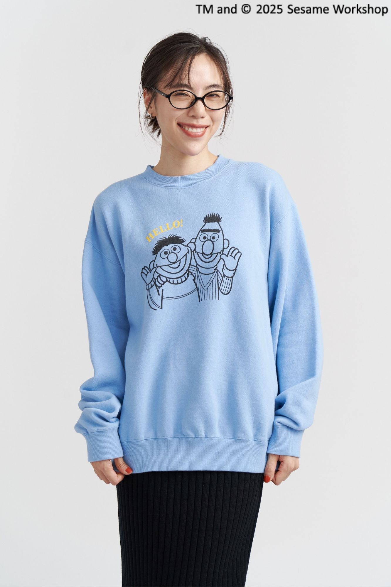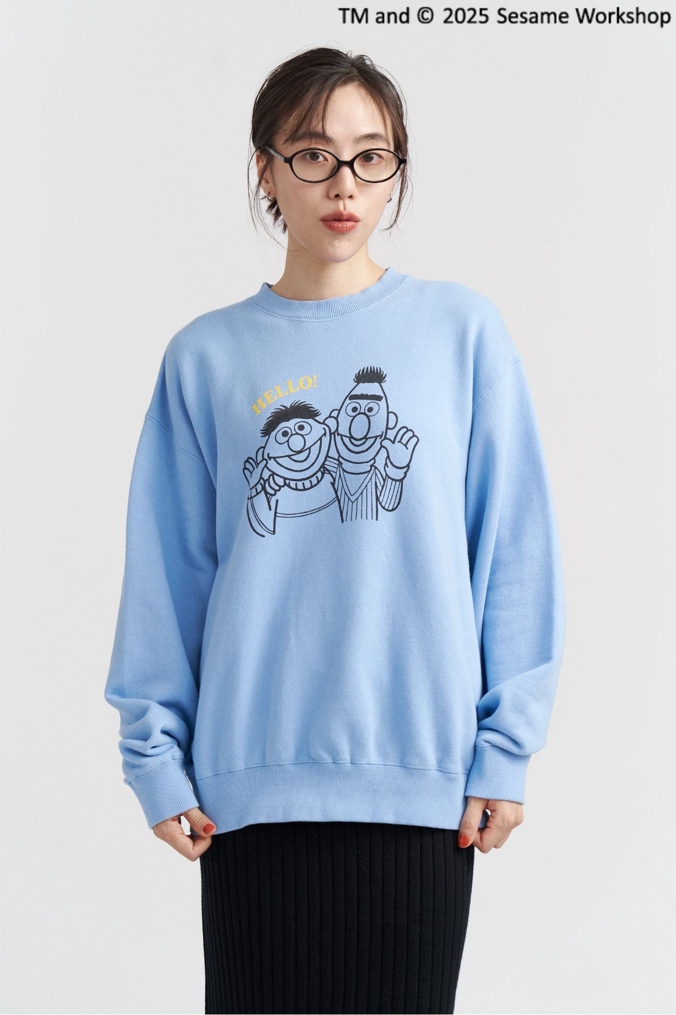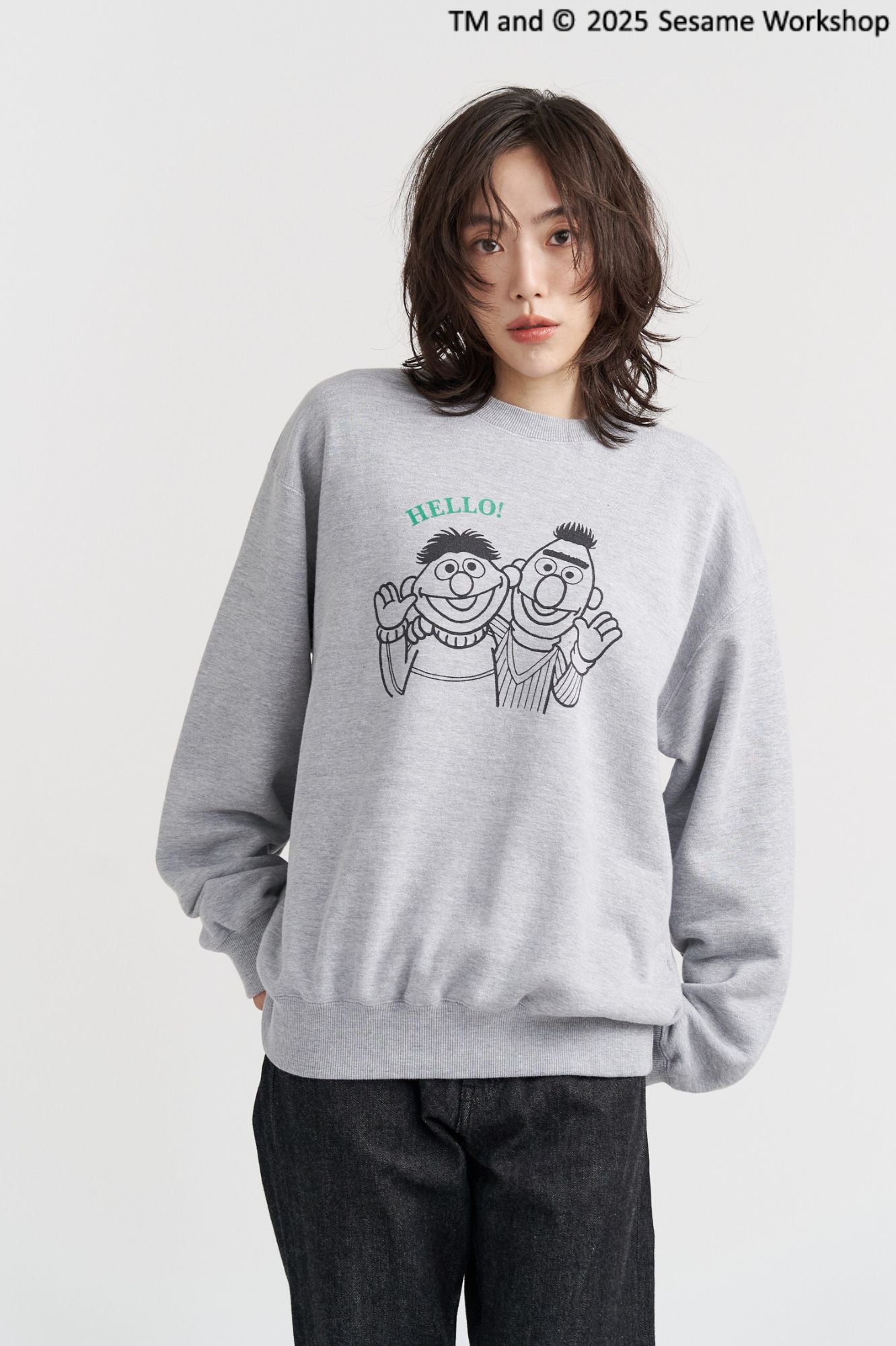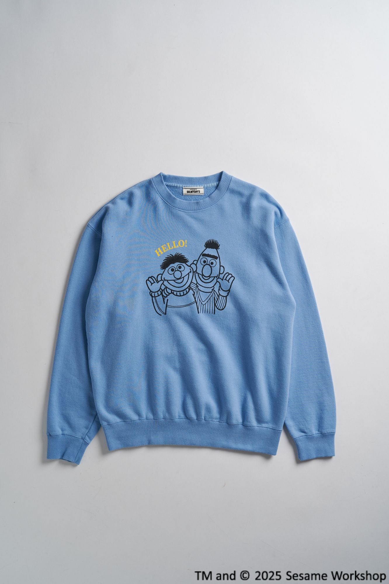 セサミストリートの仲間たちのグラフィックを染み込みプリントで表現し、さらに製品洗いをかけることで、まるで古着のような柔らかな風合いに仕上げた一枚。