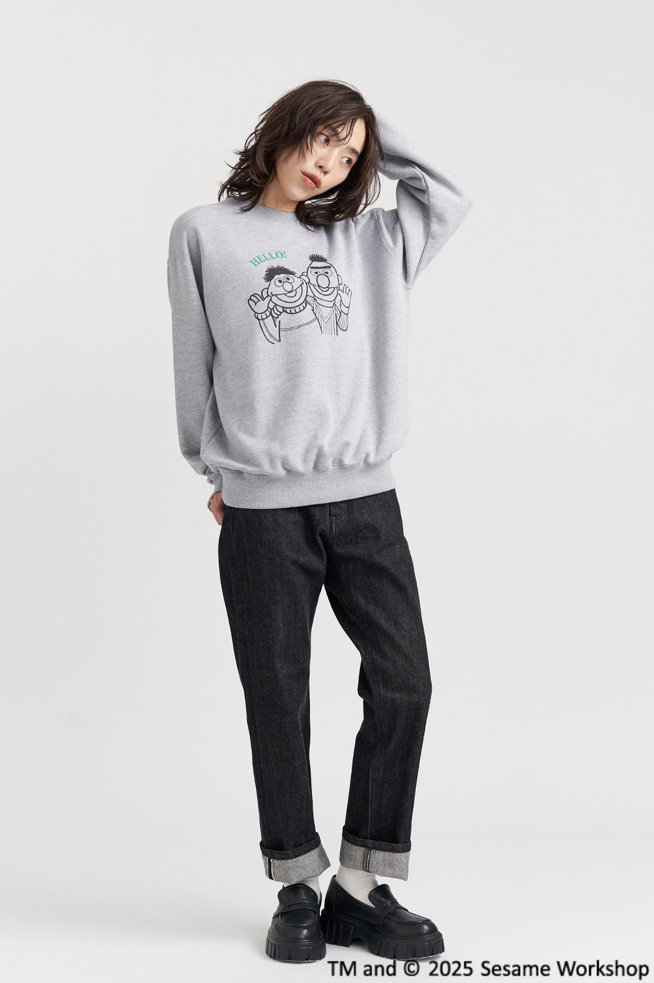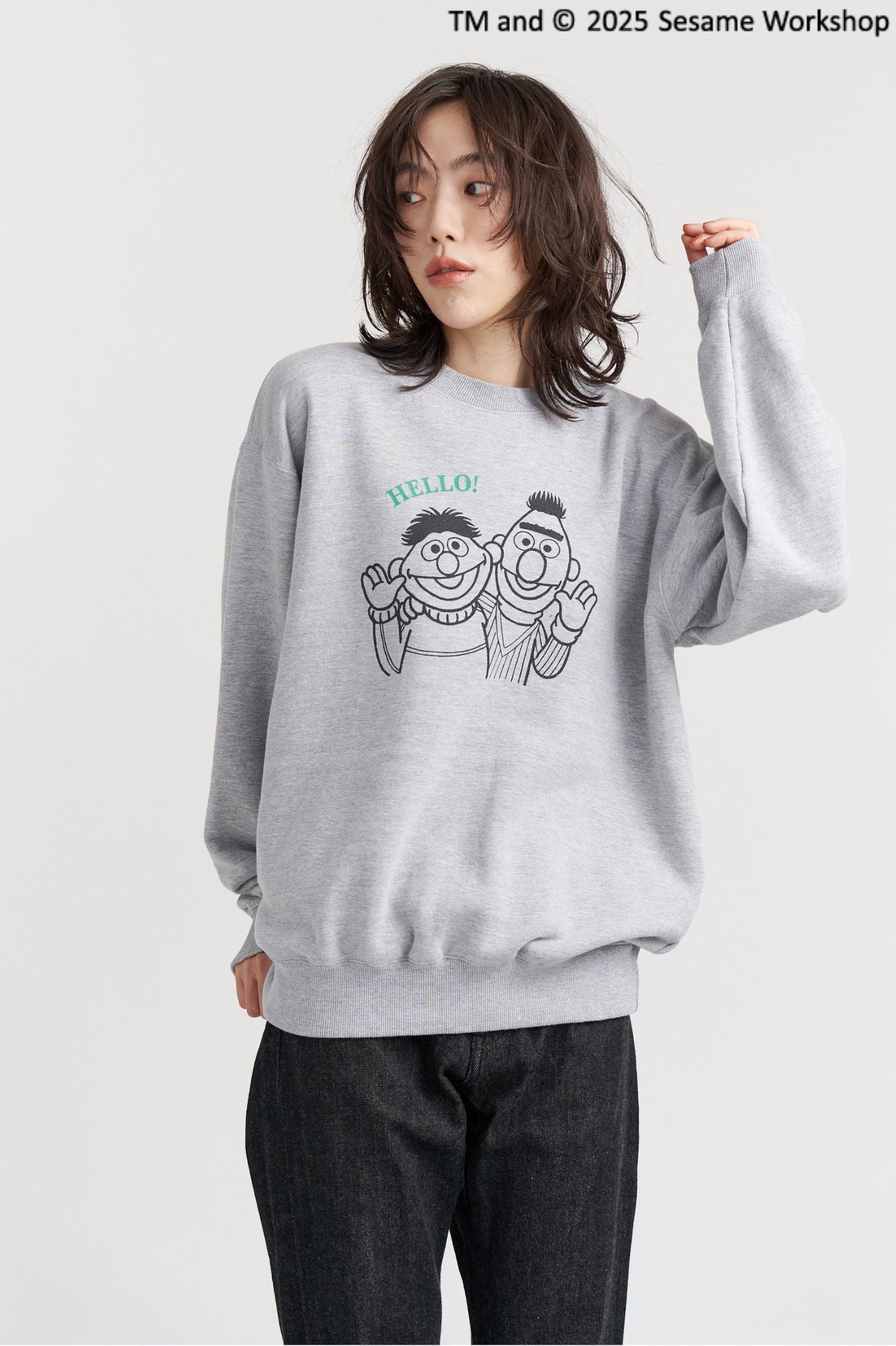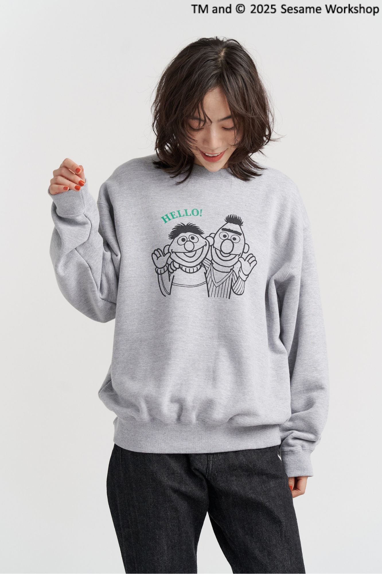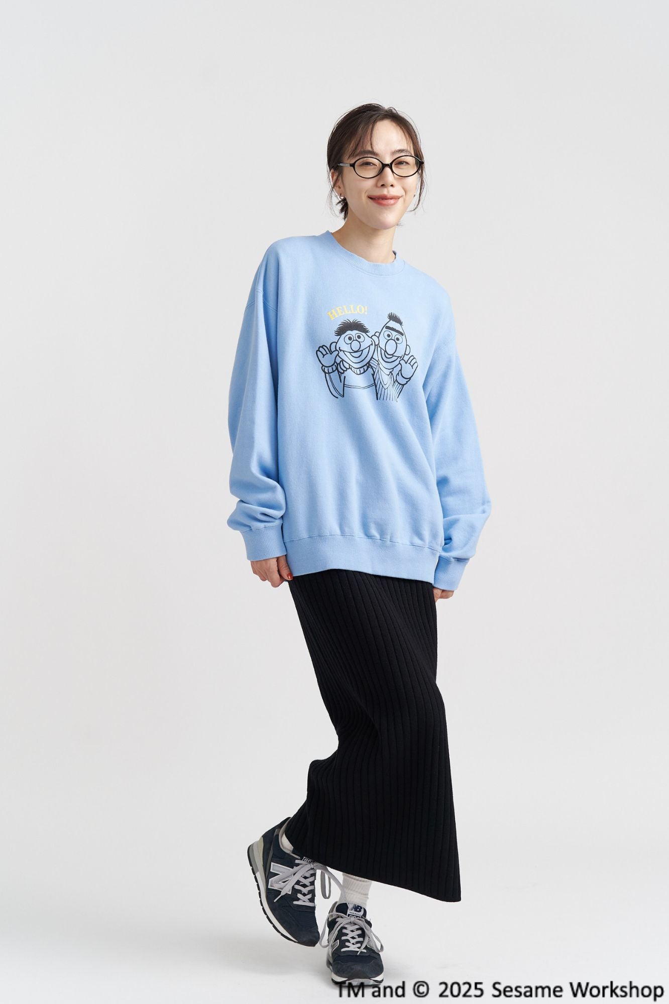 セサミストリートの仲間たちのグラフィックを染み込みプリントで表現し、さらに製品洗いをかけることで、まるで古着のような柔らかな風合いに仕上げた一枚。
