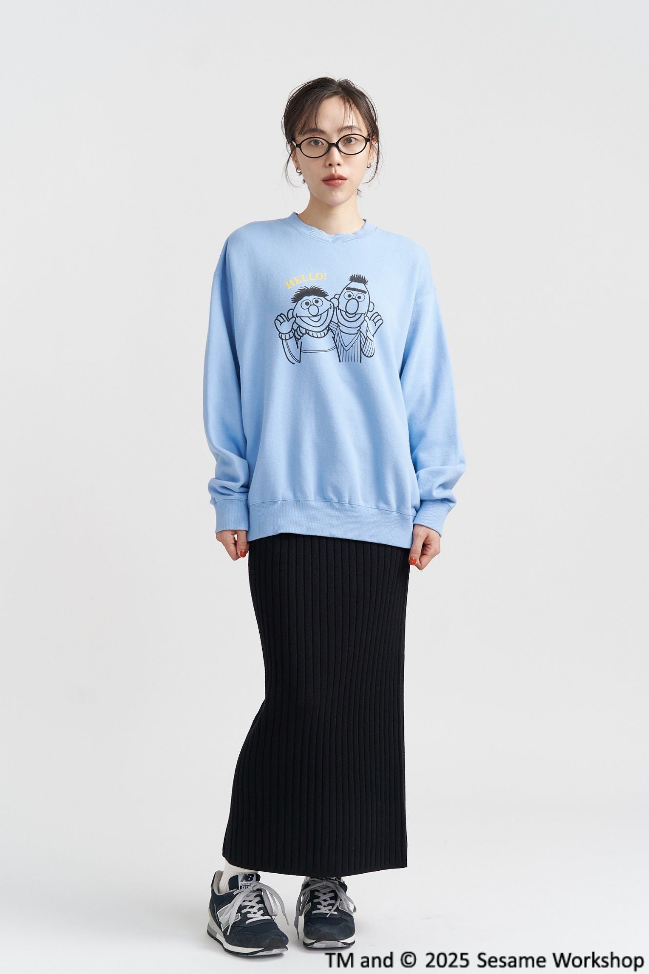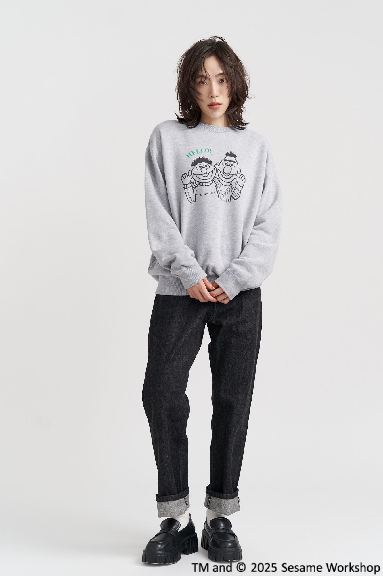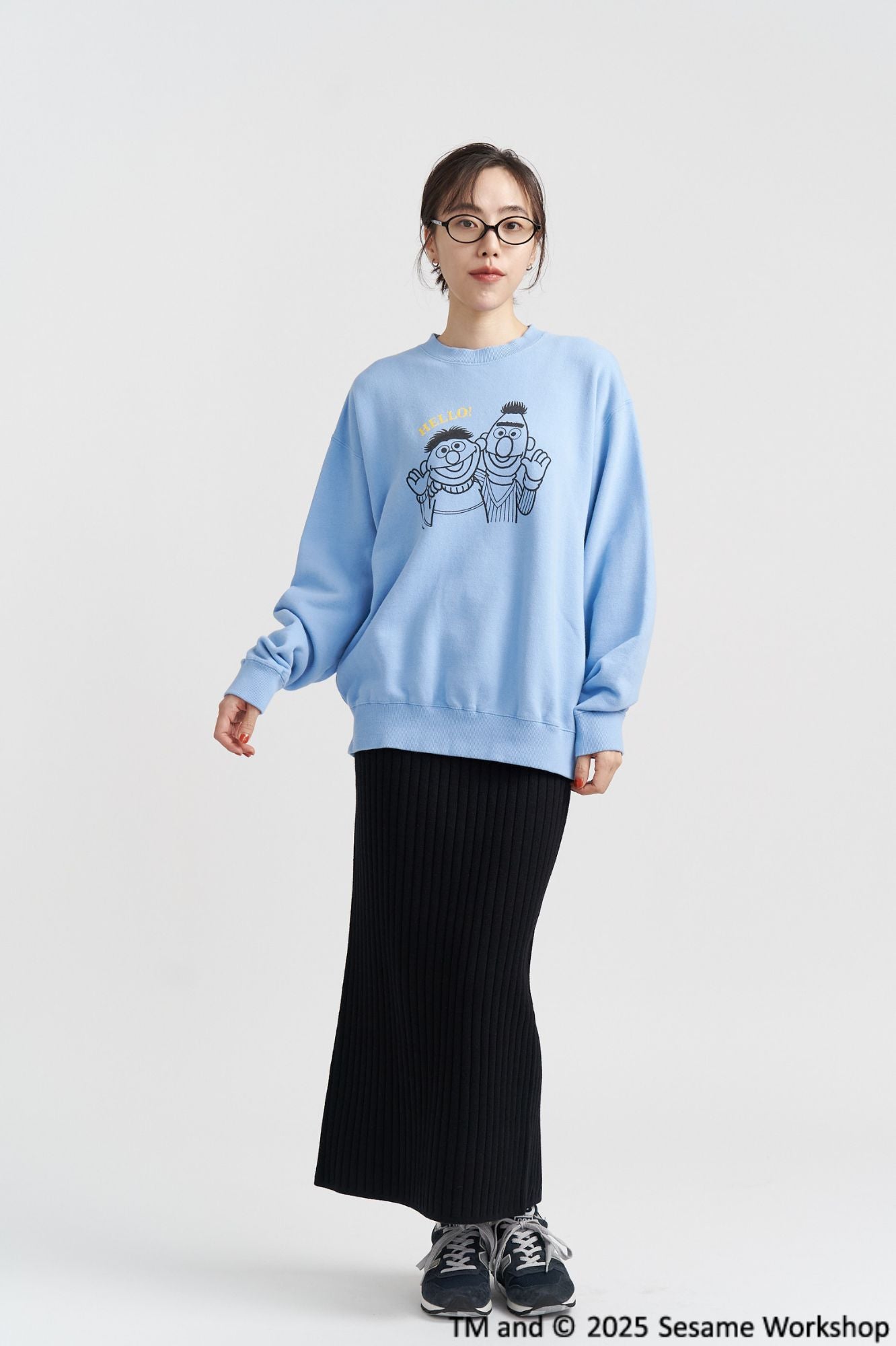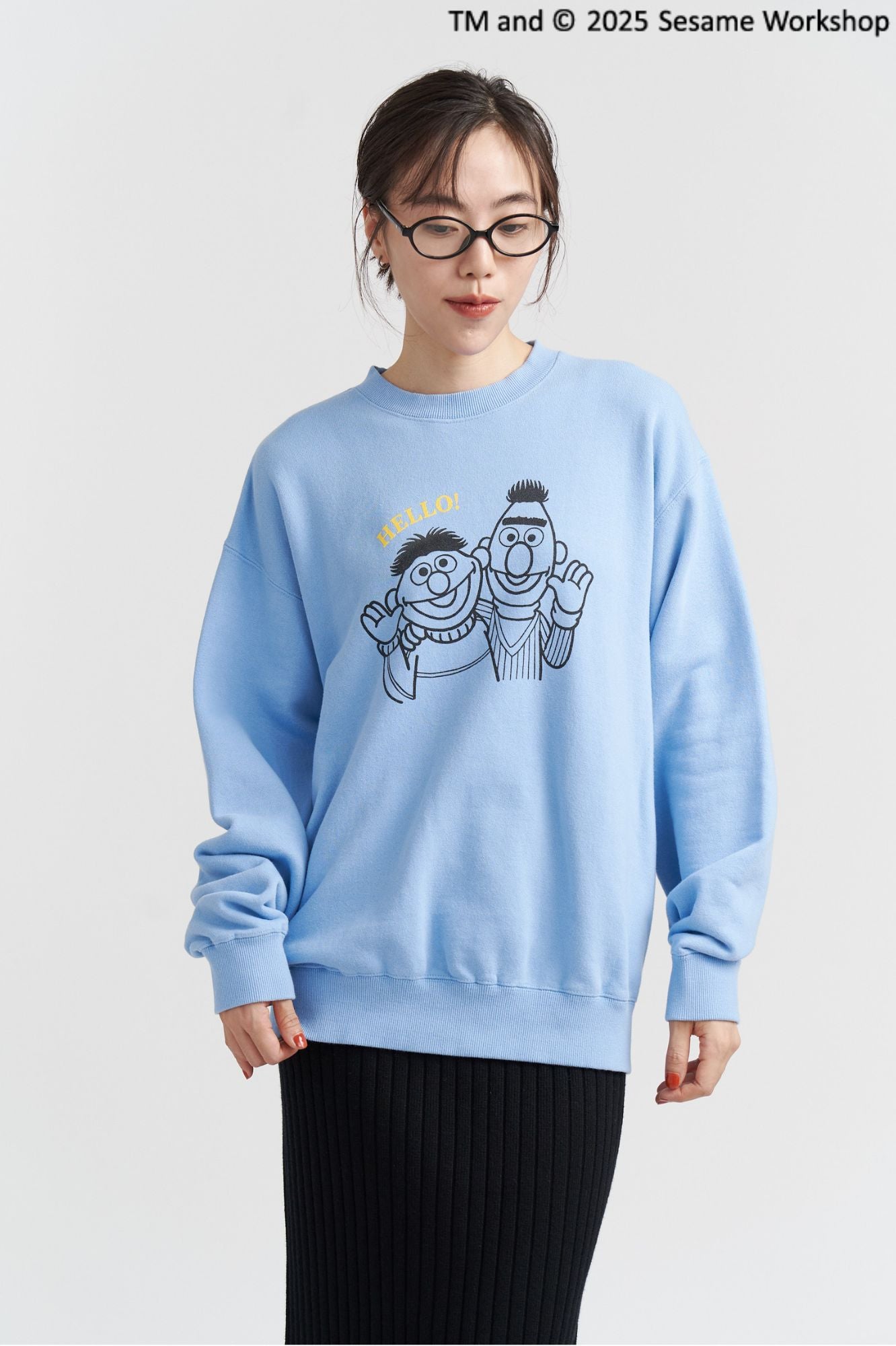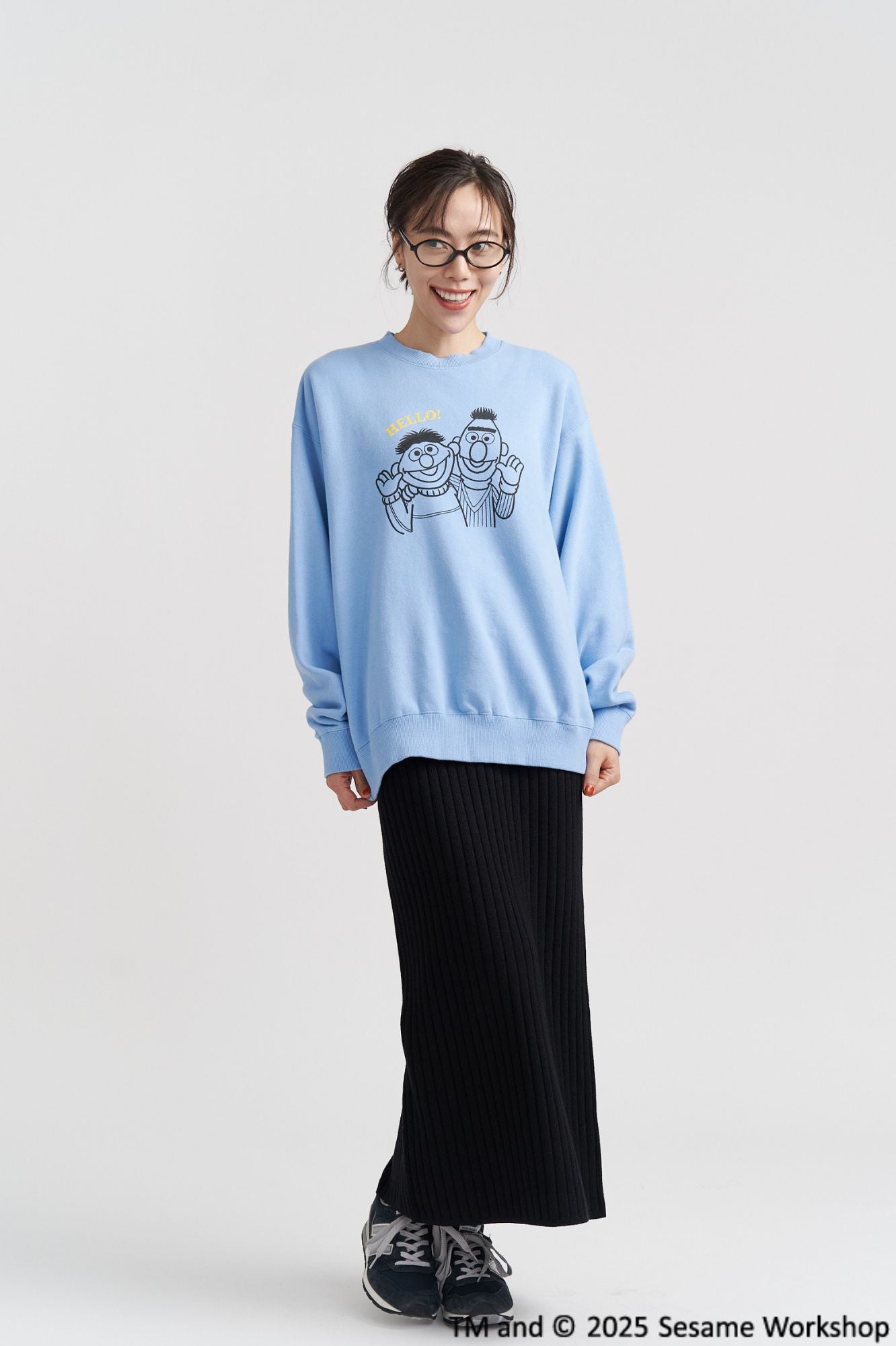 セサミストリートの仲間たちのグラフィックを染み込みプリントで表現し、さらに製品洗いをかけることで、まるで古着のような柔らかな風合いに仕上げた一枚。