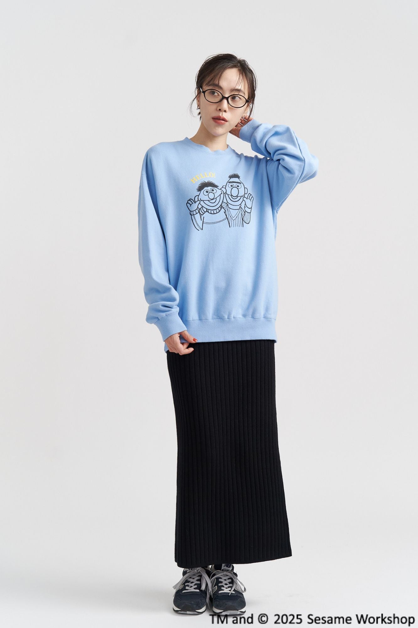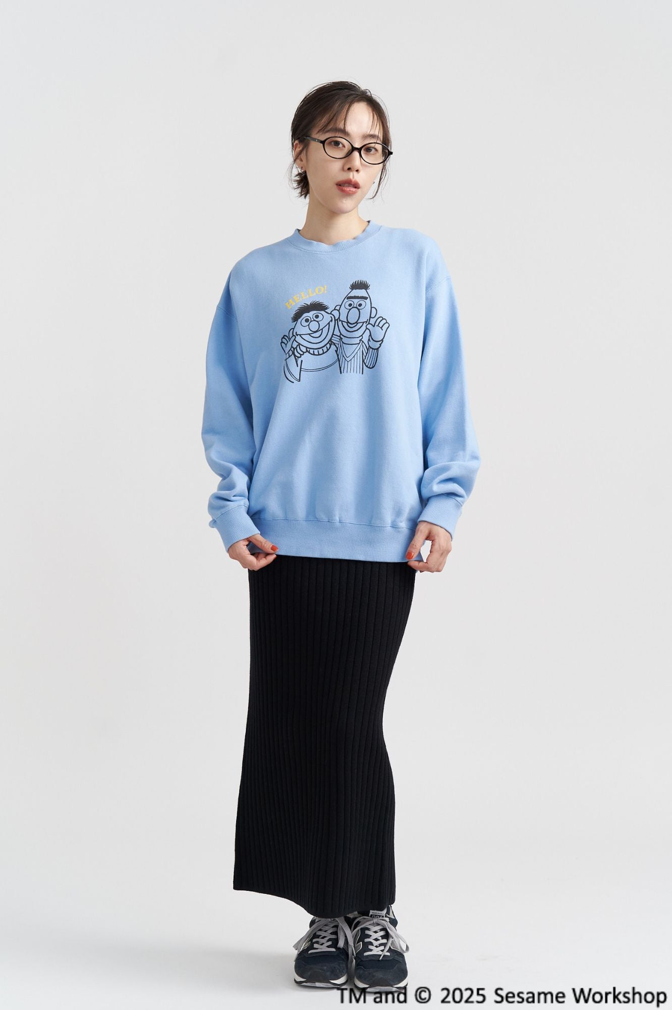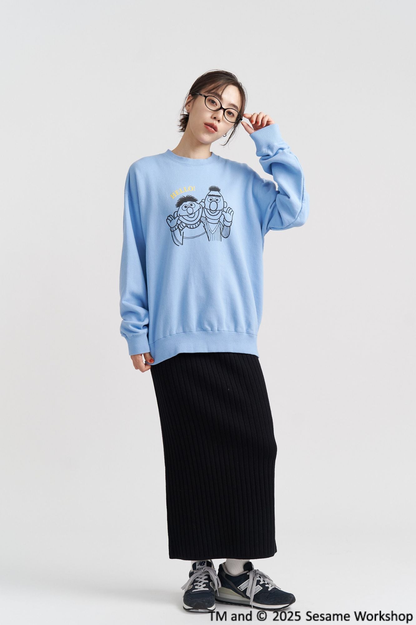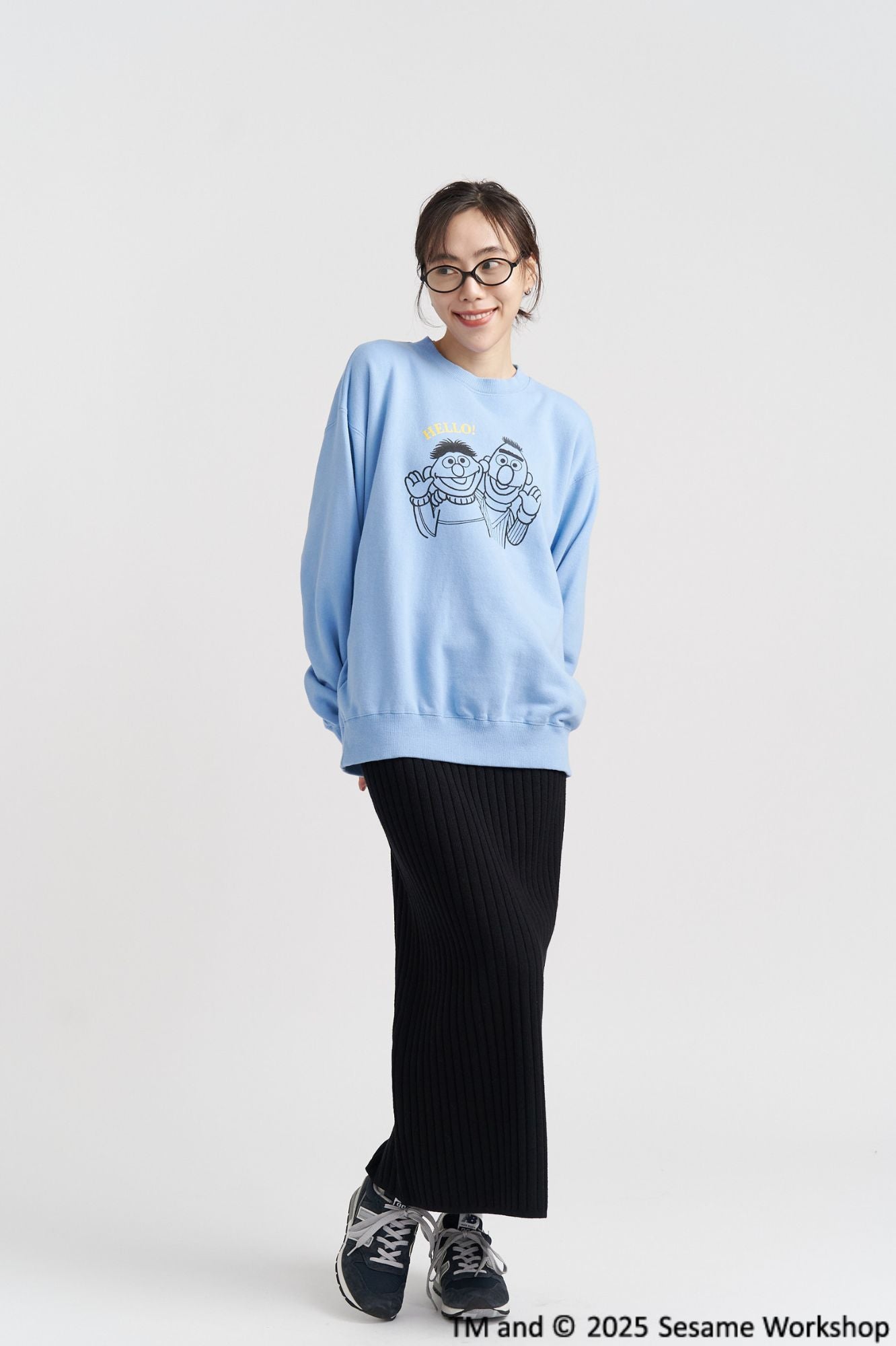 セサミストリートの仲間たちのグラフィックを染み込みプリントで表現し、さらに製品洗いをかけることで、まるで古着のような柔らかな風合いに仕上げた一枚。
