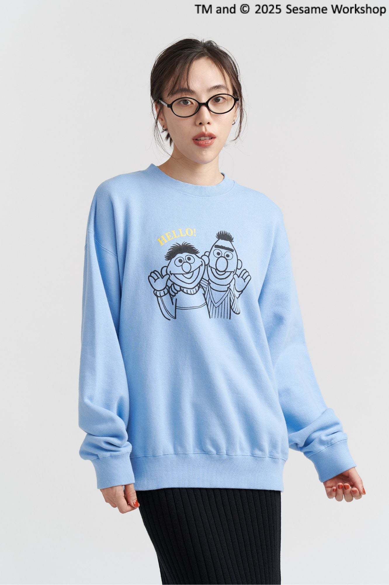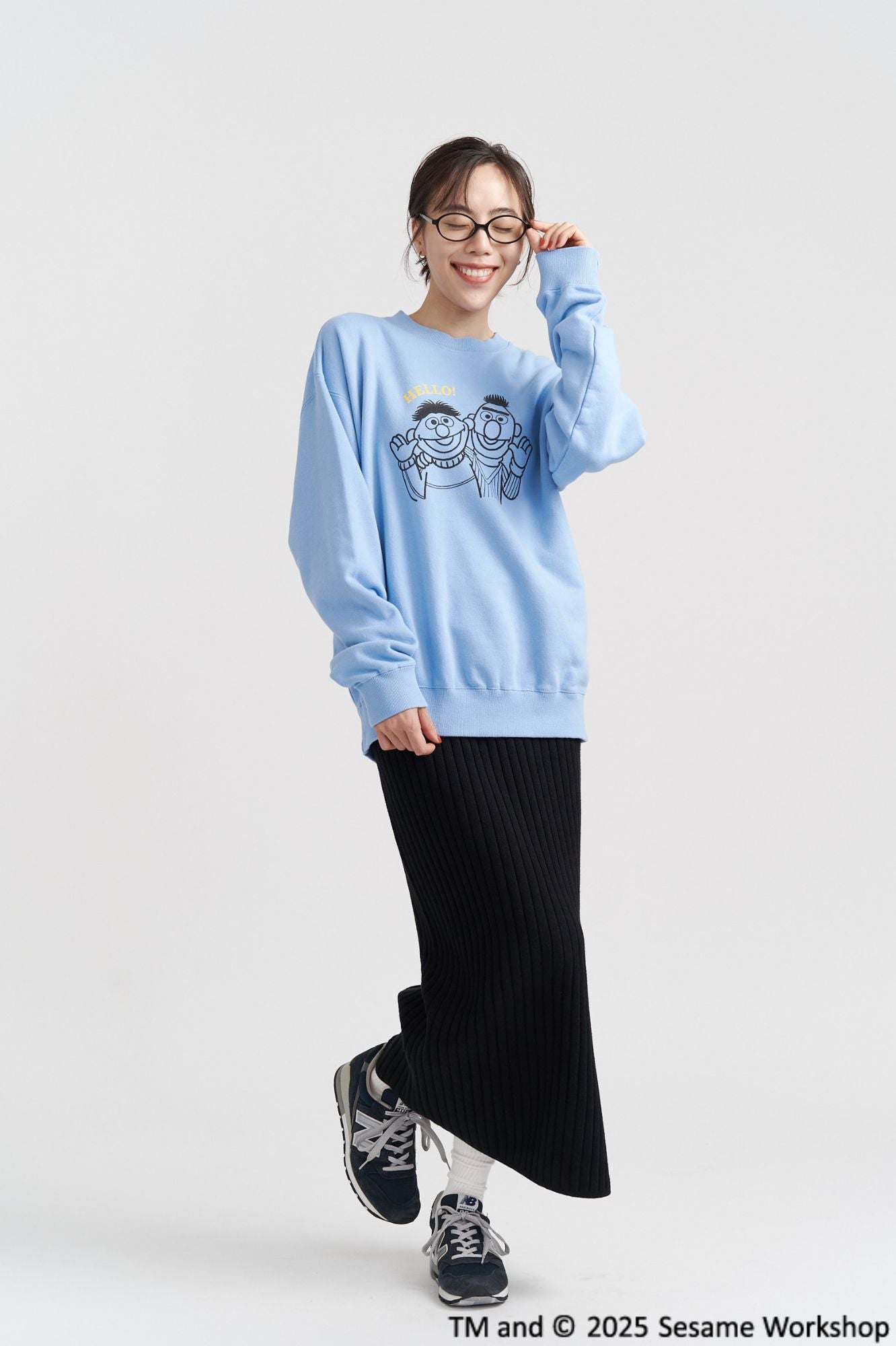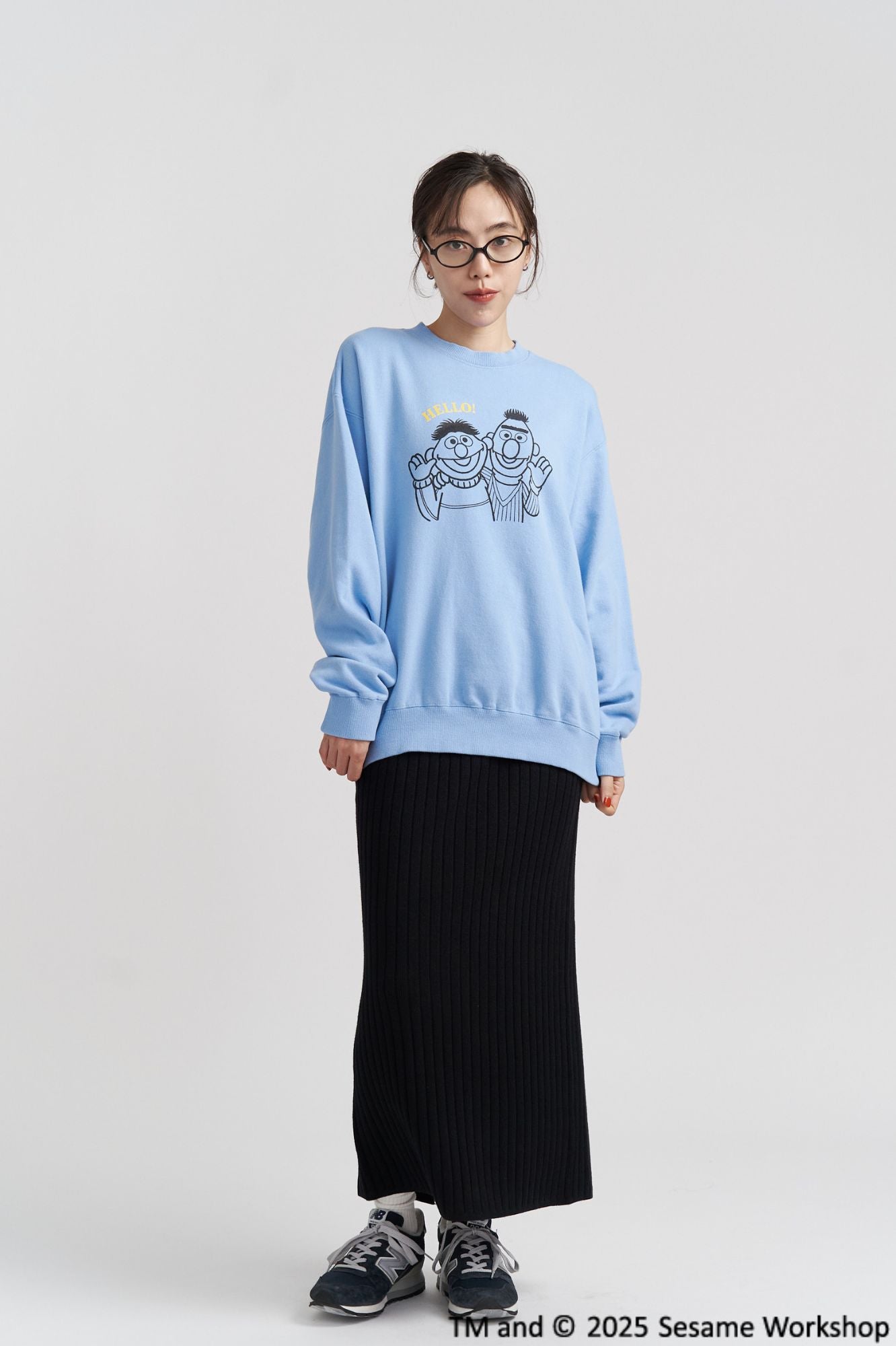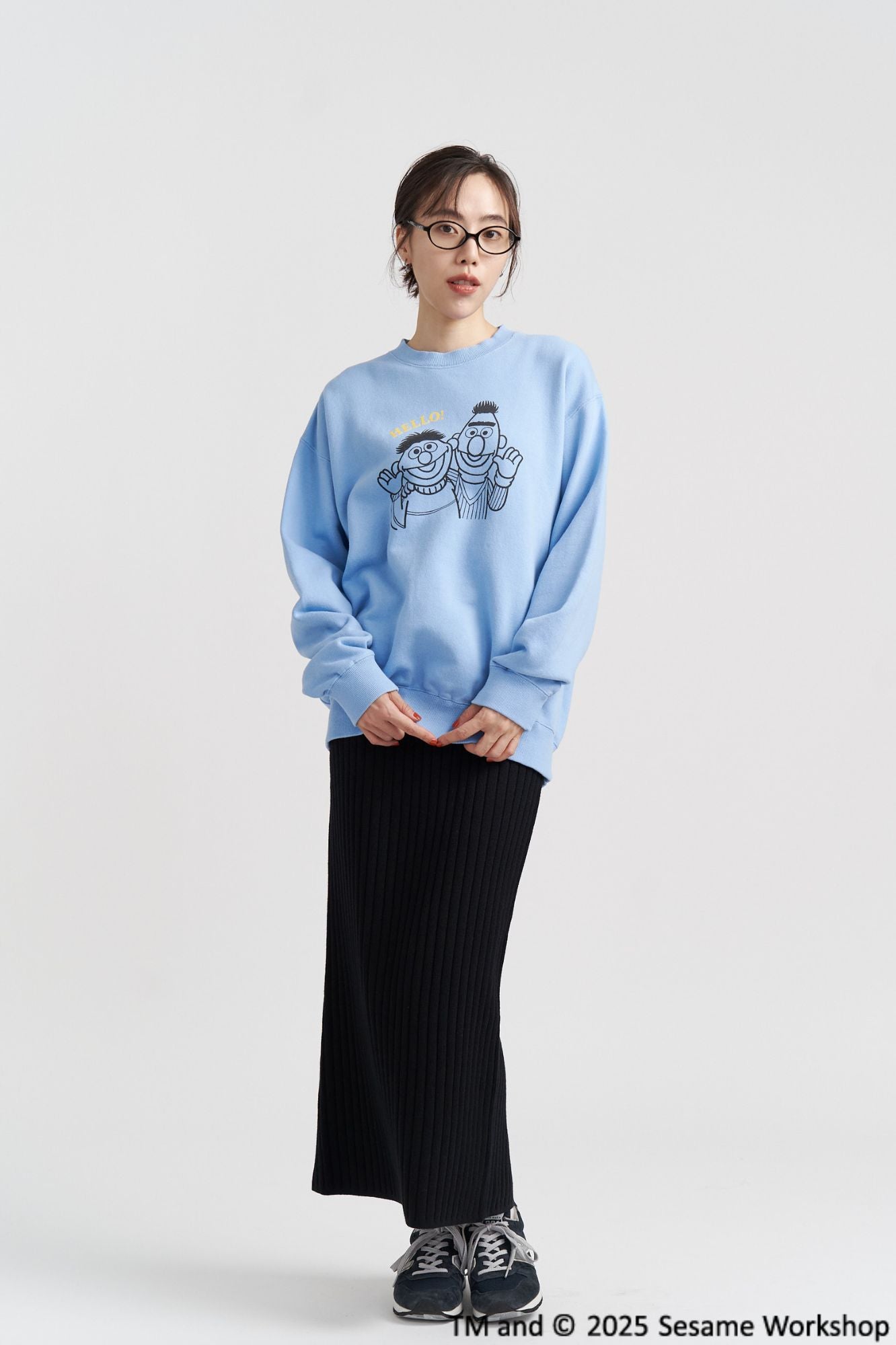 セサミストリートの仲間たちのグラフィックを染み込みプリントで表現し、さらに製品洗いをかけることで、まるで古着のような柔らかな風合いに仕上げた一枚。